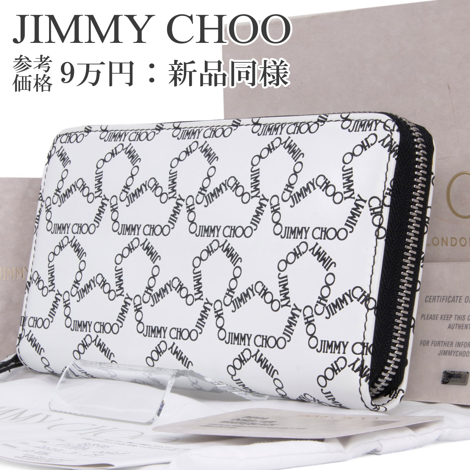 本物 送料無料 ジミーチュウ 長財布 新品同様 ラウンドファスナー メンズ レディース ピッパ 白 黒 星 スター ロゴ マーク 綺麗 G122