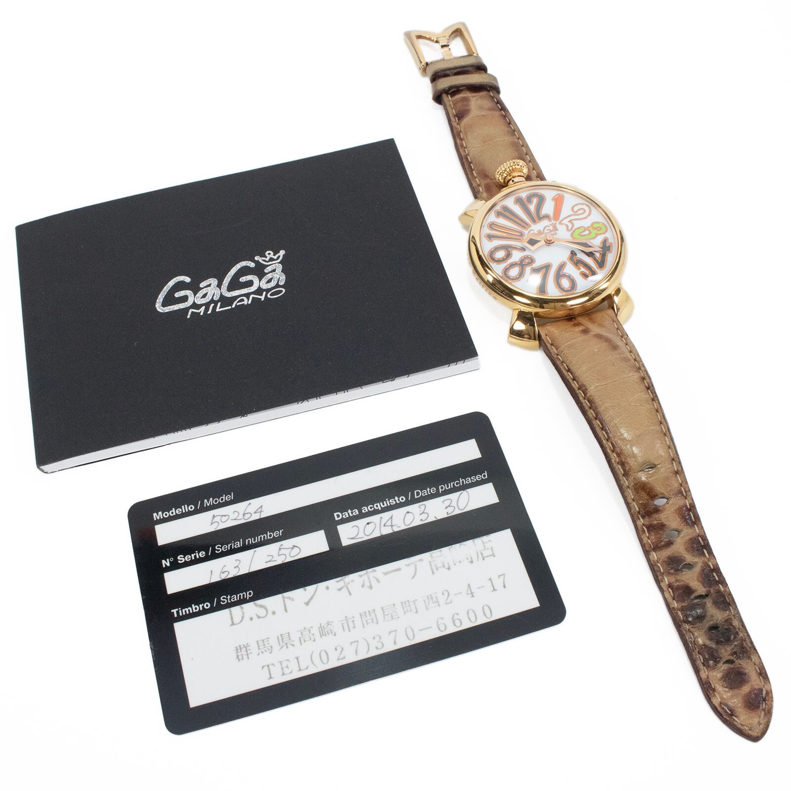 送料無料 ガガミラノ 腕時計 レディース 250本限定 マヌアーレ40mm 5026.4 白 ピンクゴールド 茶色 目立つ 珍しい ロゴ マーク 綺麗 X377