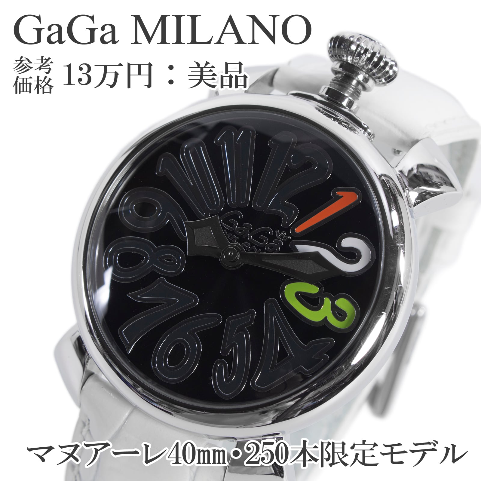 送料無料 ガガミラノ 腕時計 メンズ レディース 250本限定モデル マヌアーレ40mm 黒 ブラック 白 目立つ 珍しい レアカラー ロゴ 綺麗 X378
