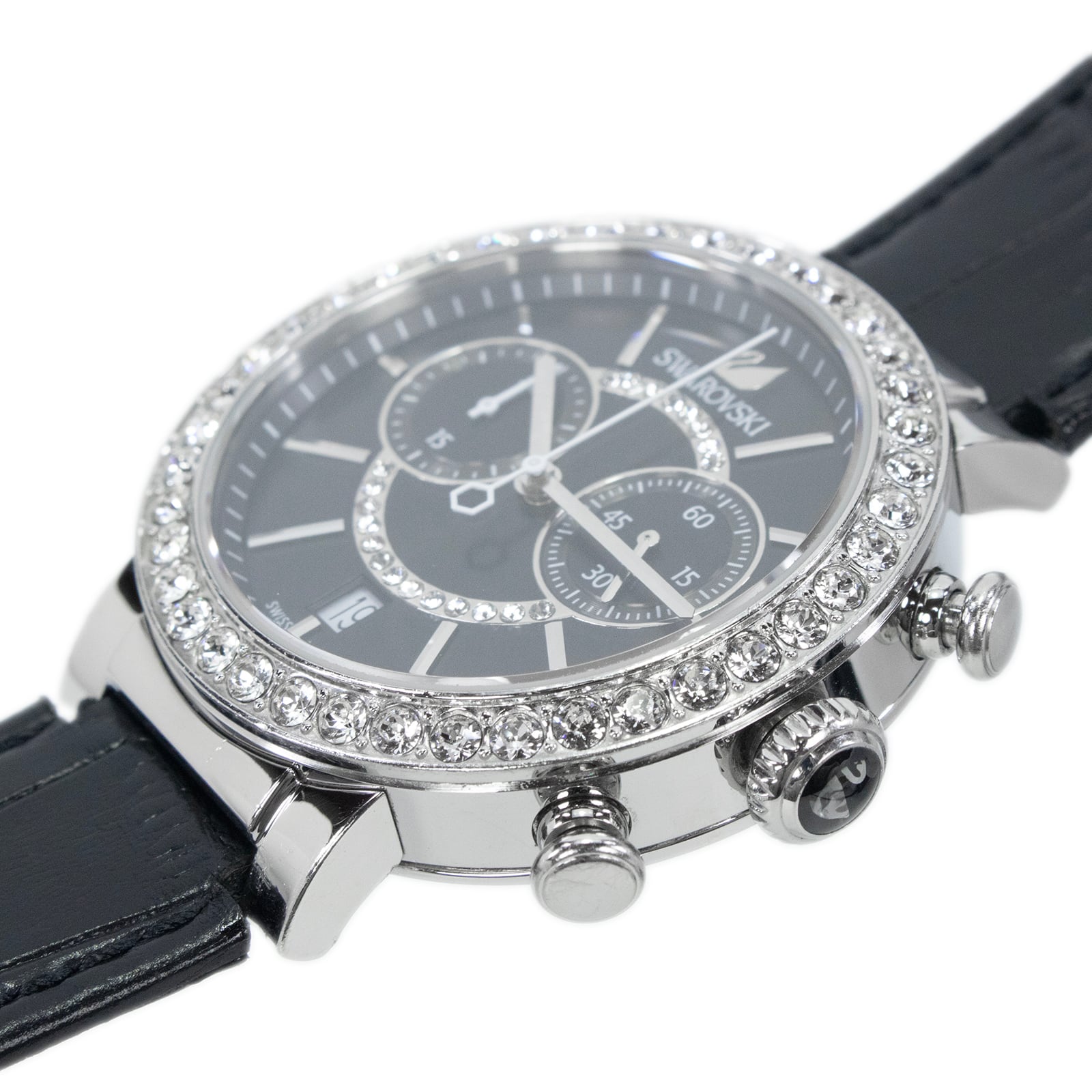送料無料 スワロフスキー 腕時計 メンズ レディース シトラスフィア 黒 ブラック クロノグラフ クリスタル ロゴ マーク ブランド 綺麗 X380