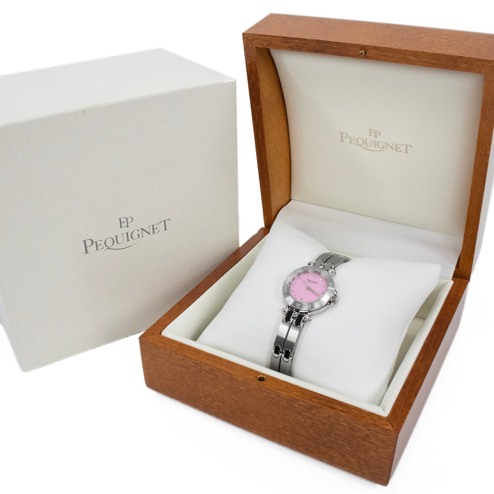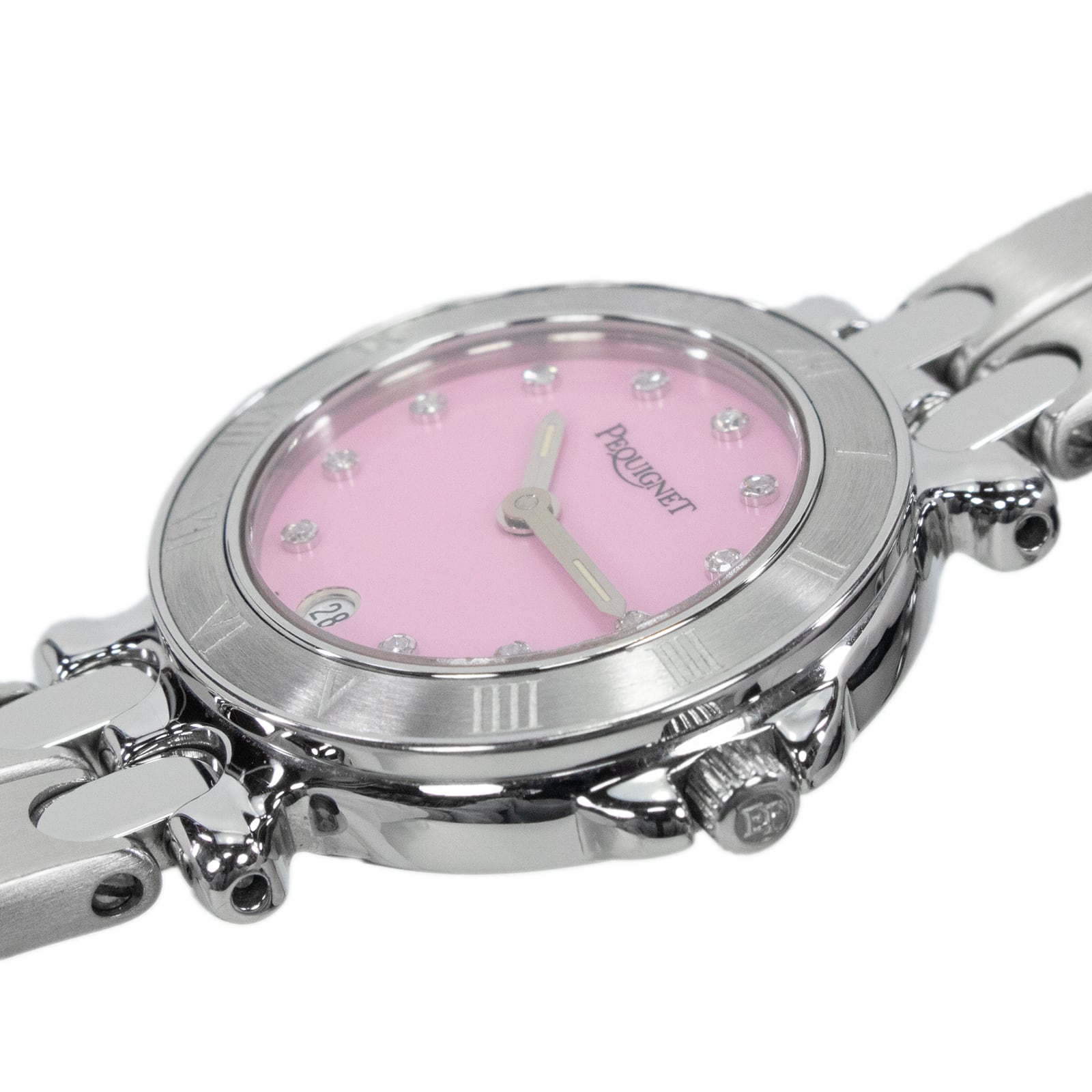 送料無料 ペキネ ペキニエ 腕時計 レディース モーリア ピンク 11Pダイヤモンド ローマン文字 小さめ ロゴ ブランド ドレスウォッチ X381
