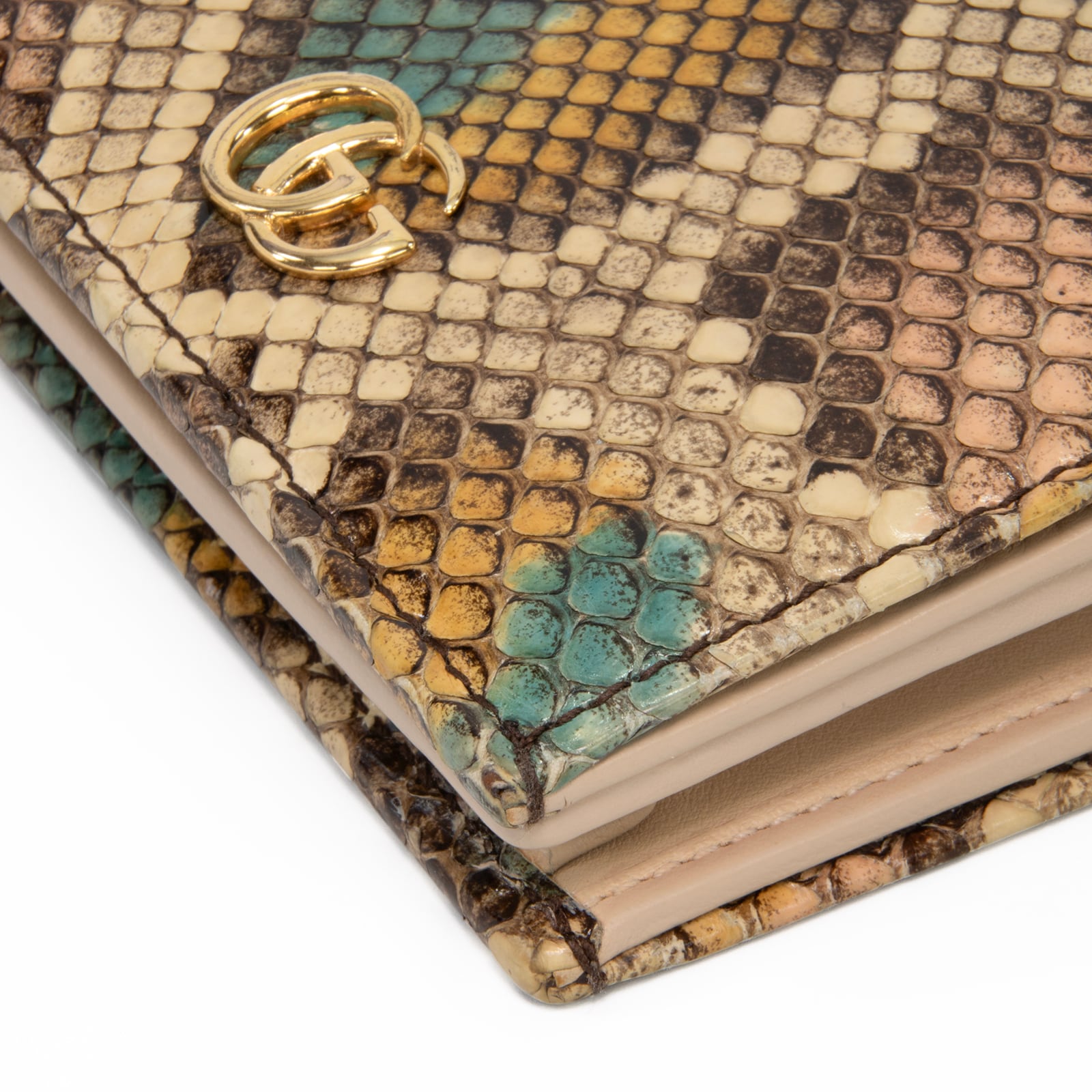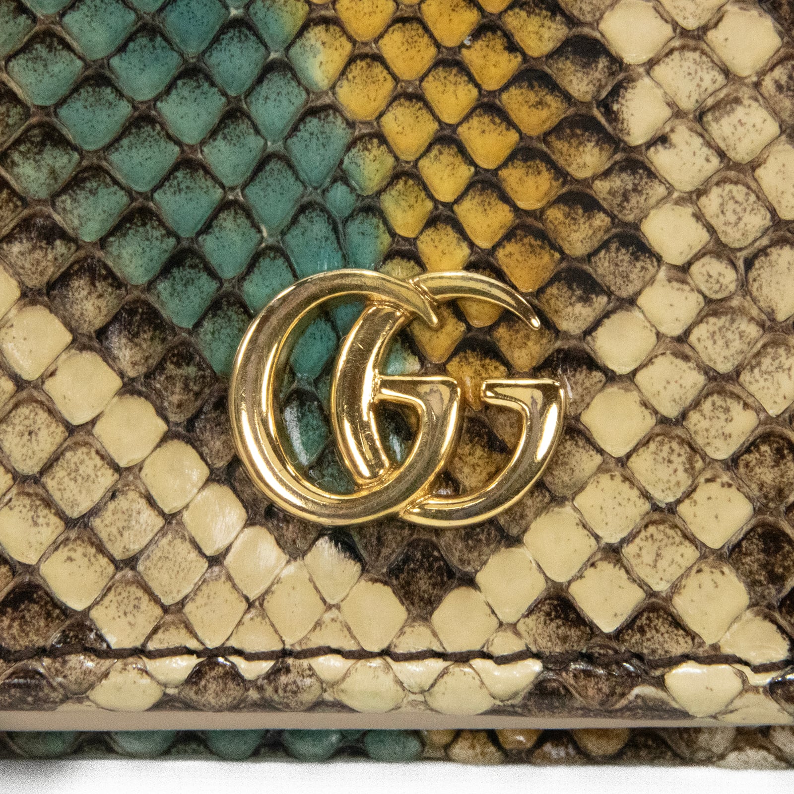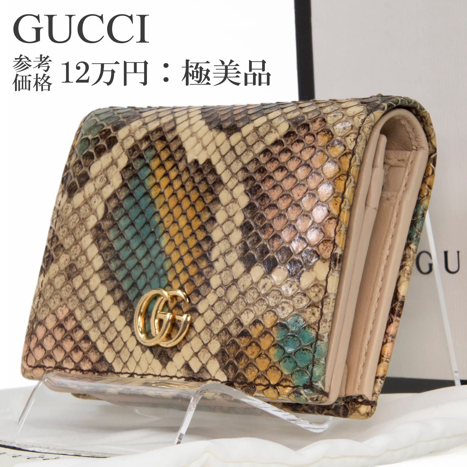 本物 送料無料 グッチ 二つ折り財布 メンズ レディース パイソン GGマーモント ベージュ 焦げ茶色 緑 蛇の革 ミニ コンパクト 小さい C230