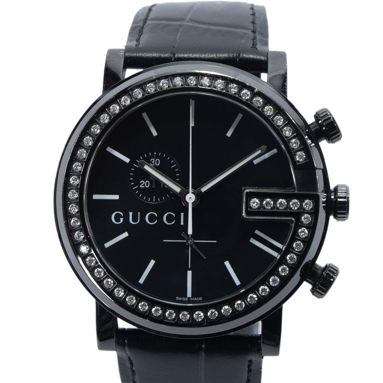こちらは漆黒に輝くダイヤモンドが目を奪う、グッチのGクロノ・101M・腕時計でございます。