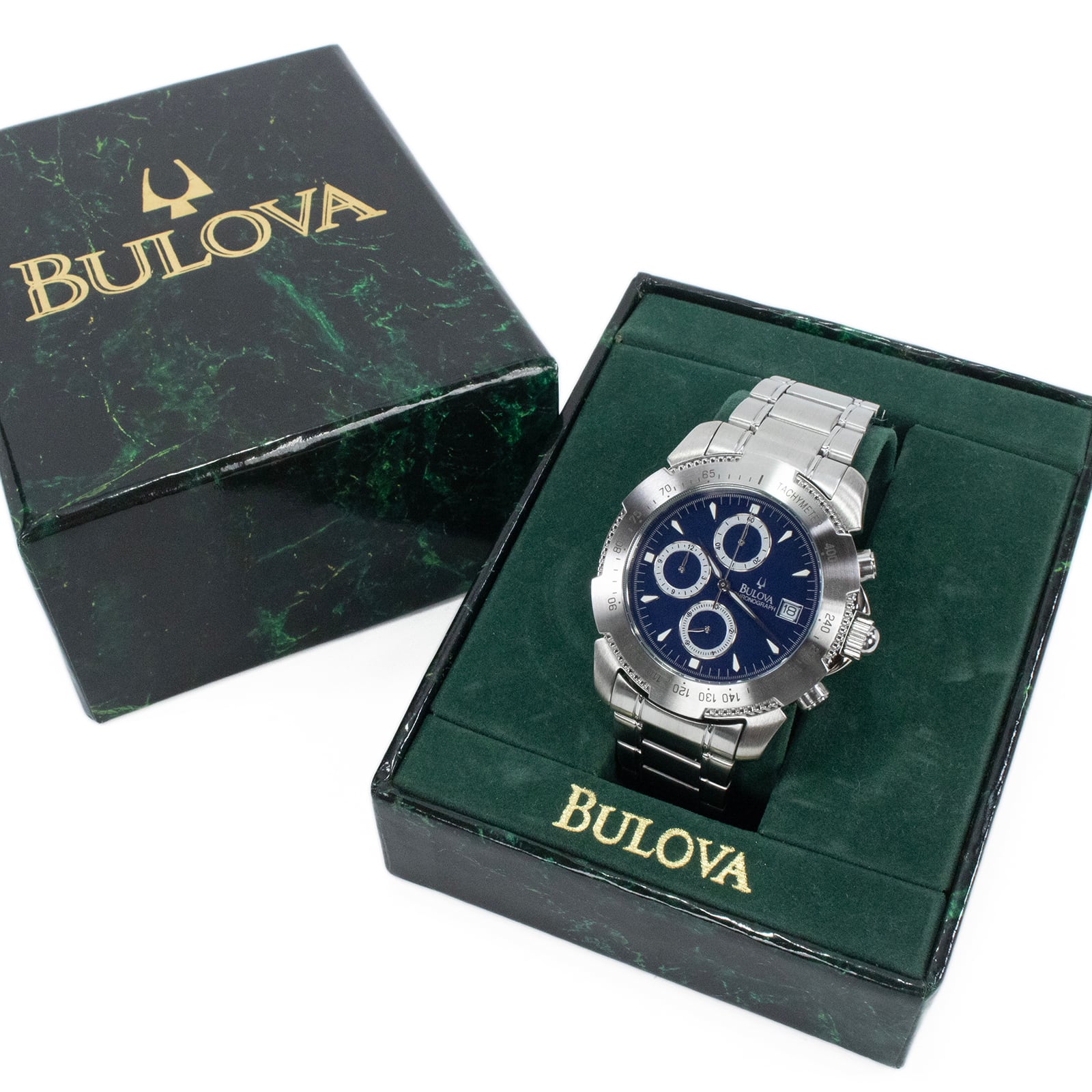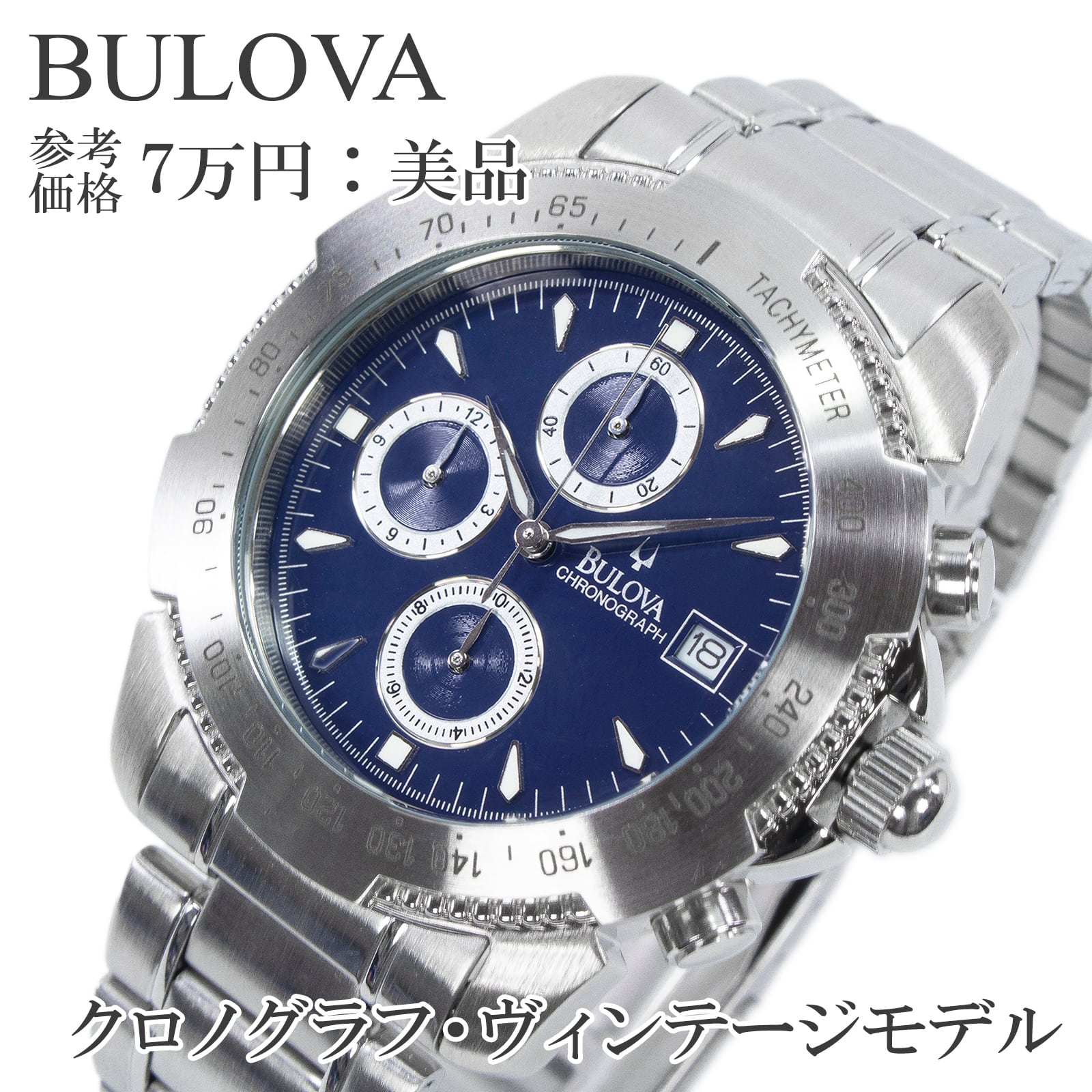 送料無料 ブローバ 腕時計 3針 メンズ ネイビーブルー シルバー クロノグラフ ヴィンテージ スモセコ Y2K ロゴ マーク ブランド 綺麗 X385