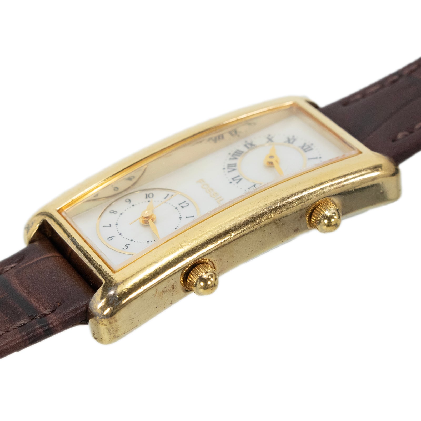 こちらは2つの時刻を同時に表示できる、フォッシルの腕時計でございます。