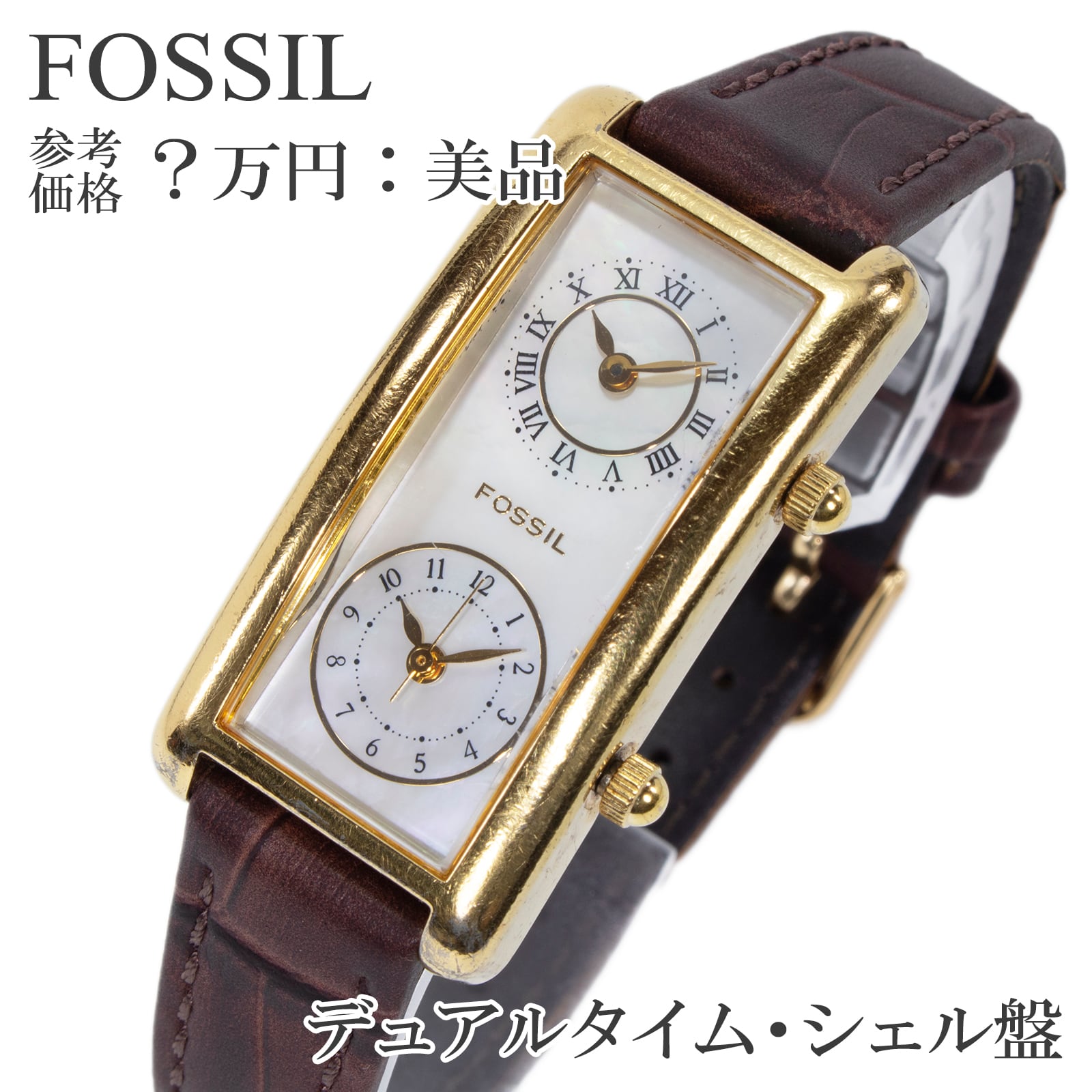 送料無料 フォッシル 腕時計 レディース DR-2101 白 ホワイト ゴールド シェル盤 ヴィンテージ デュアルタイム ロゴ ブランド 綺麗 Z002