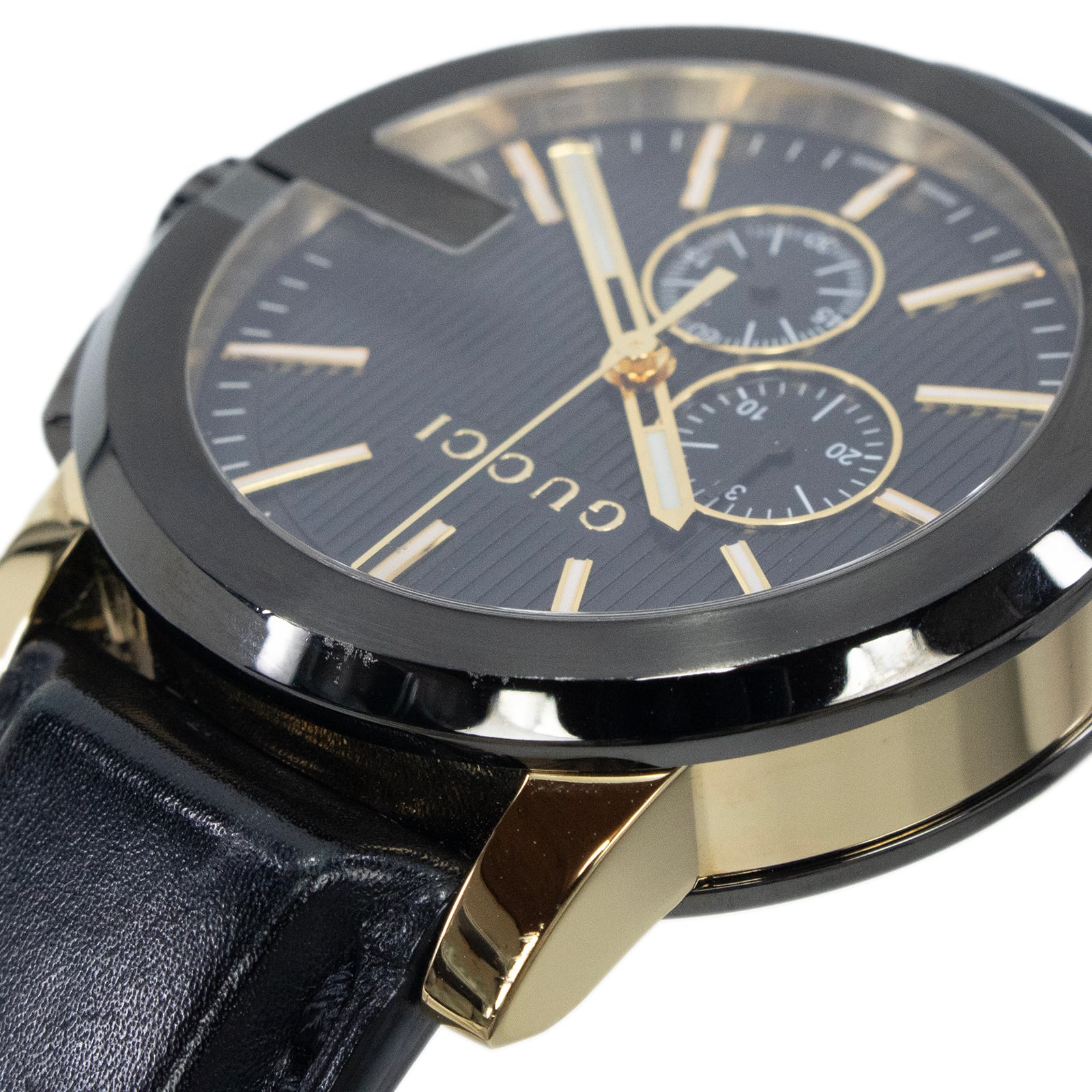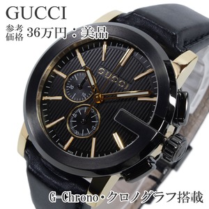 送料無料 グッチ 腕時計 3針 メンズ Gクロノ 101.2 YA101203 黒 イエローゴールド クロノグラフ ビッグG ロゴ マーク ブランド 綺麗 Q182