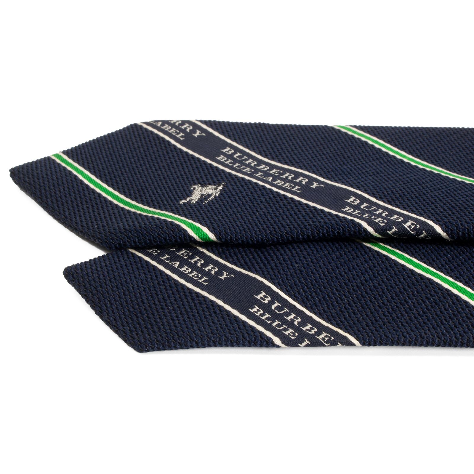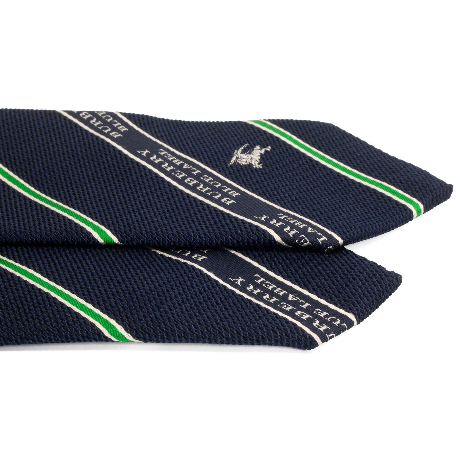 送料無料 バーバリー ネクタイ ナロータイ ジャガードタイ 新品同様 シルク ネイビーブルー 黒 緑 白 ストライプ ホースロゴ マーク S501