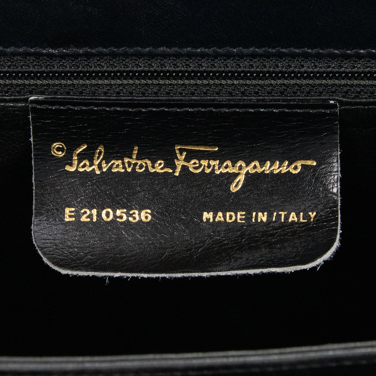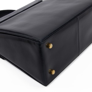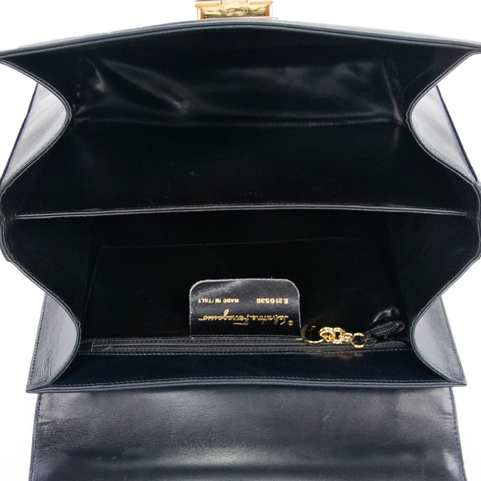 中央で輝きを放つゴールドのガンチーニ金具は、フェラガモならではの高級感を演出し、かっちりとしたフォルムが、どのような場面でも持つ方の品格を高めてくれることと存じます。