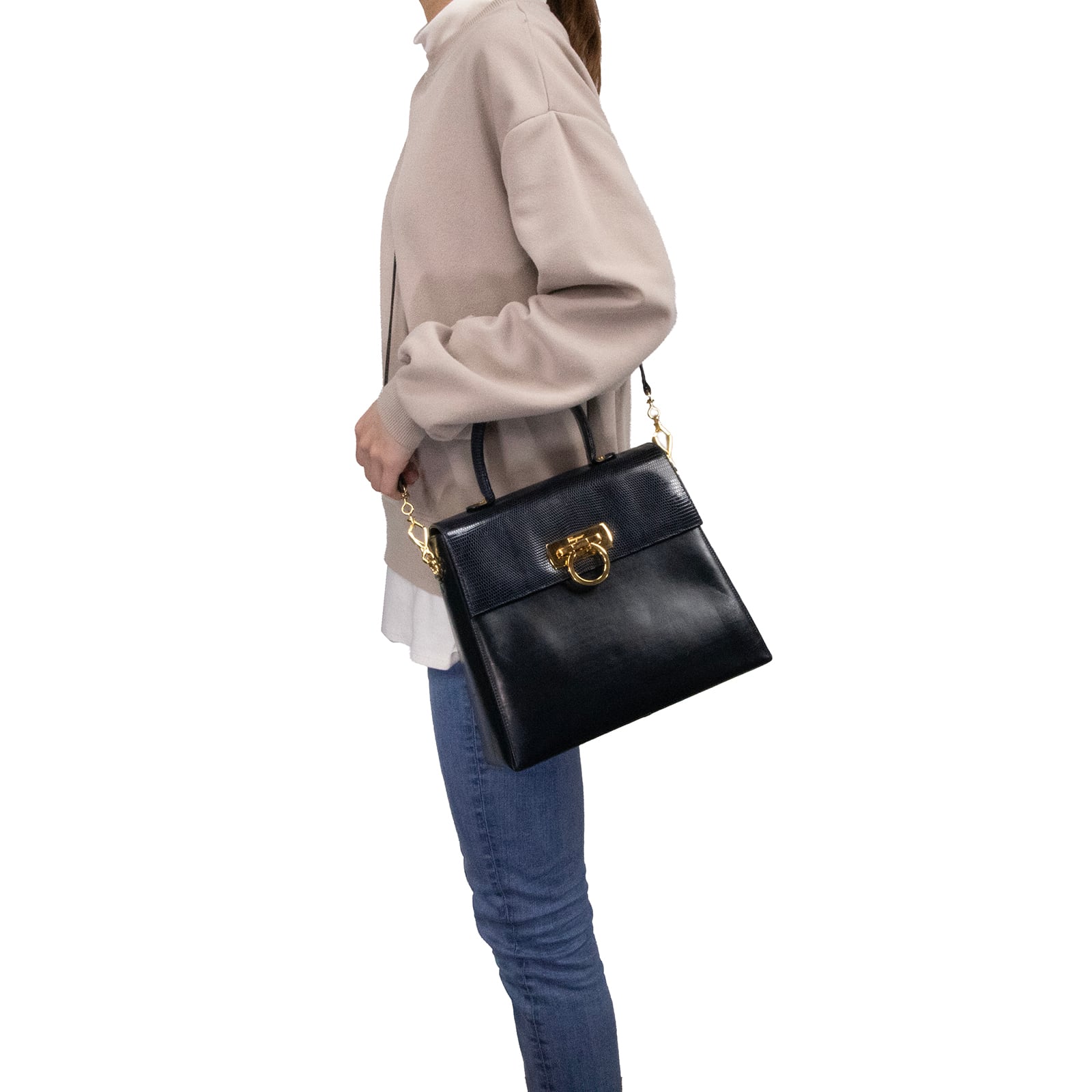 こちらは気品あふれる佇まいが持つ方をさらに輝かせるような、フェラガモのガンチーニ・2WAYショルダーバッグでございます。