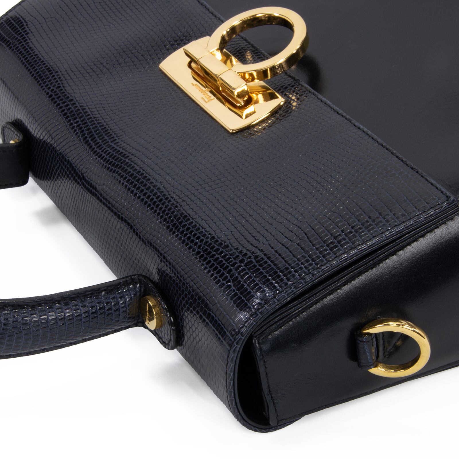 本物 送料無料 フェラガモ 2WAYショルダーバッグ ハンドバッグ レディース リザード型押し ネイビーブルー 斜め掛け ロゴ 鞄 バック L211