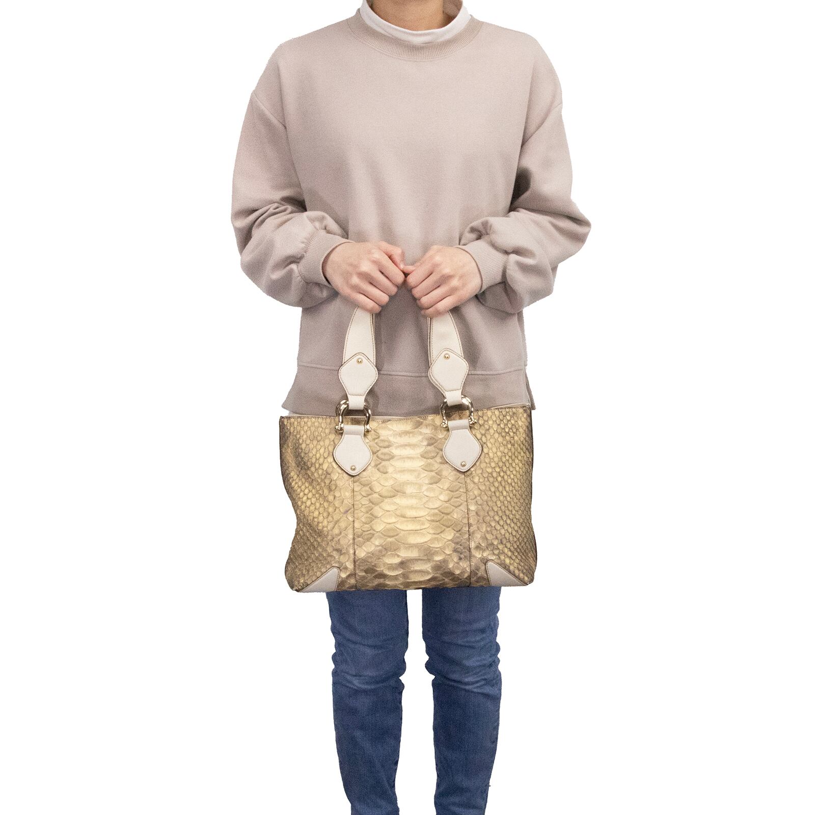 本物 送料無料 グッチ ハンドバッグ トートバッグ レディース パイソン ゴールド オフホワイト 珍しい 蛇の本革 A4対応 鞄 バック L212