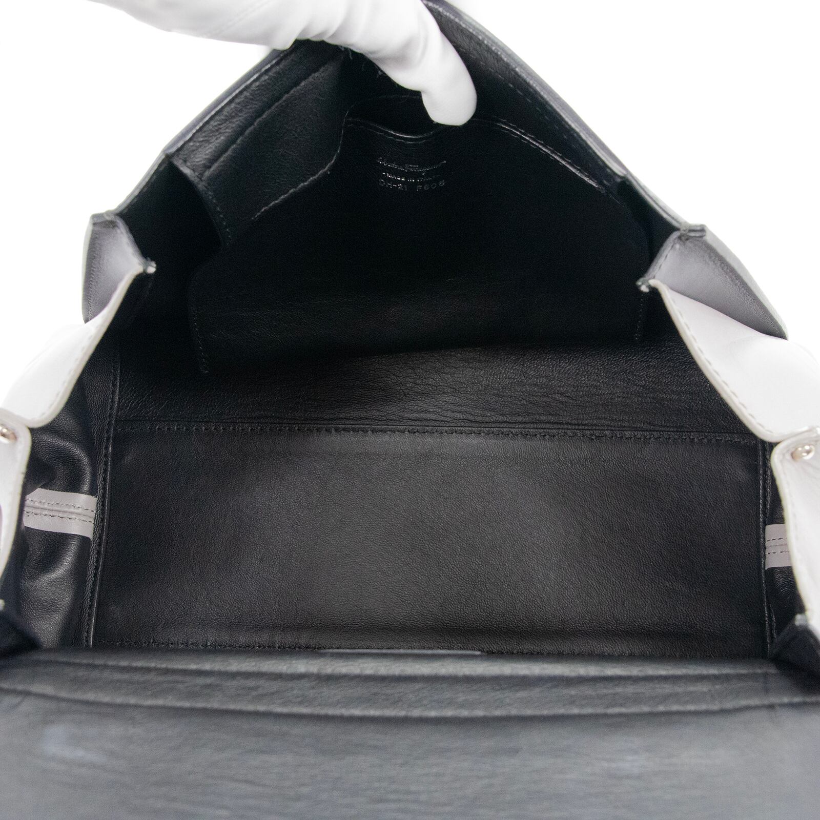 滑らかなカーフスキンとの組み合わせが、デザインに深みを与え、フェラガモのアイコンであるガンチーニの輝きが一層の高級感を添えております。