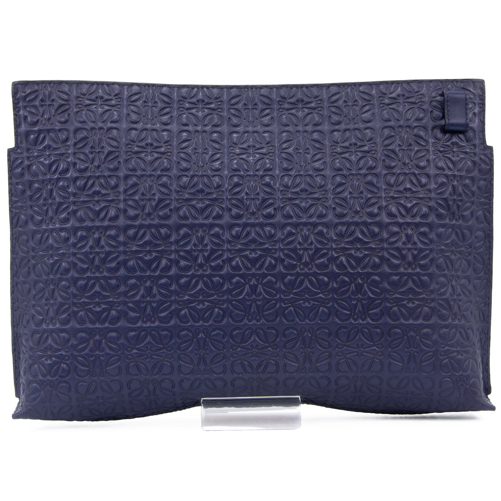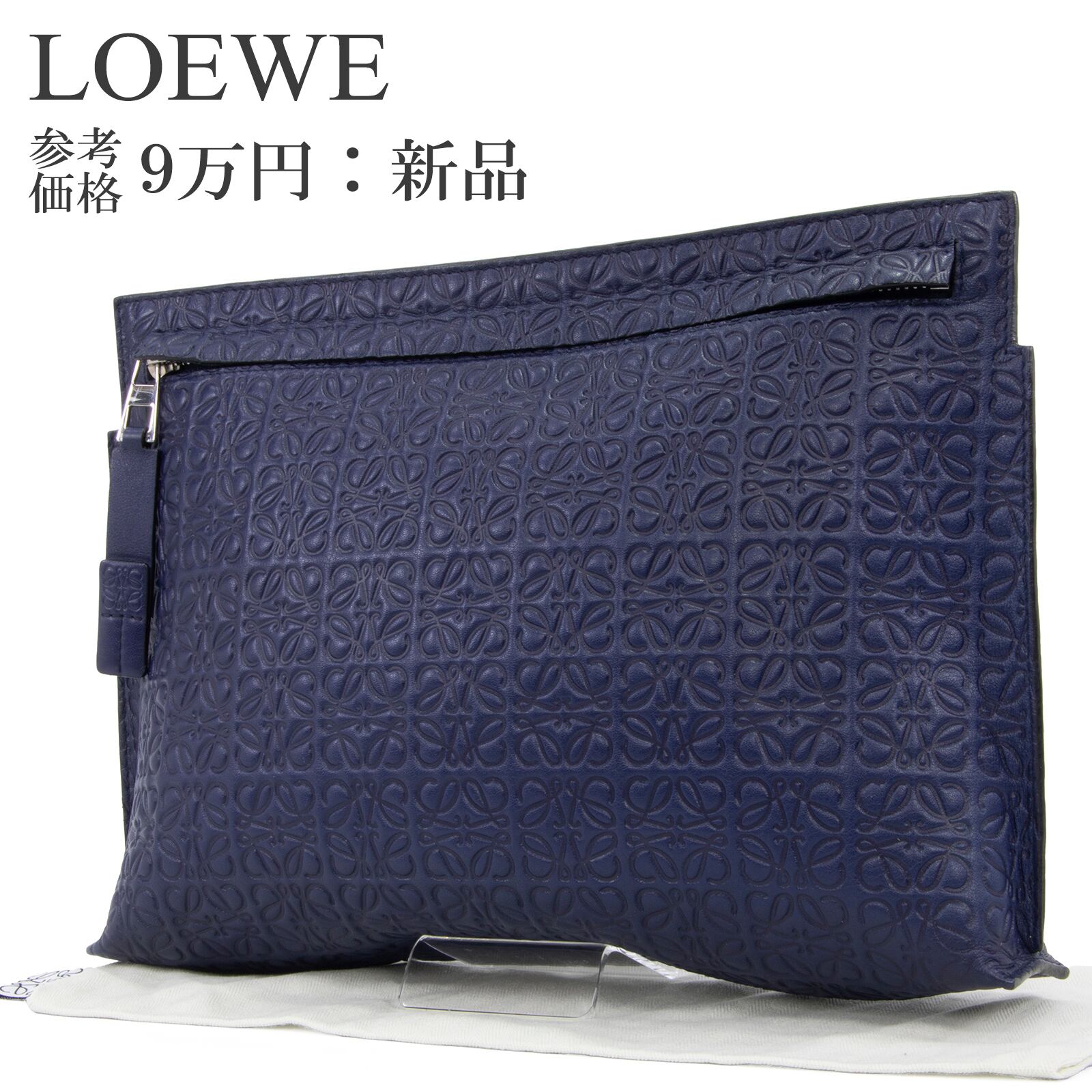 本物 送料無料 ロエベ クラッチバッグ 新品 セカンドバッグ メンズ レディース Tポーチ リピート ネイビーブルー 総柄 ロゴ 鞄 バック I261