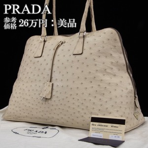 本物 送料無料 プラダ ハンドバッグ レディース オーストリッチ ストルッツォ スポルト 本革 レザー 三角ロゴ マーク 鞄 バック 綺麗 I266