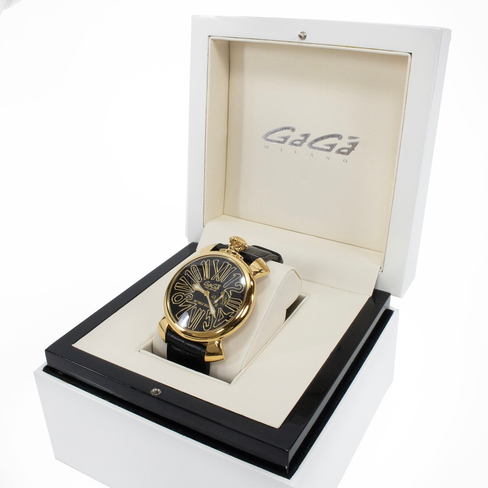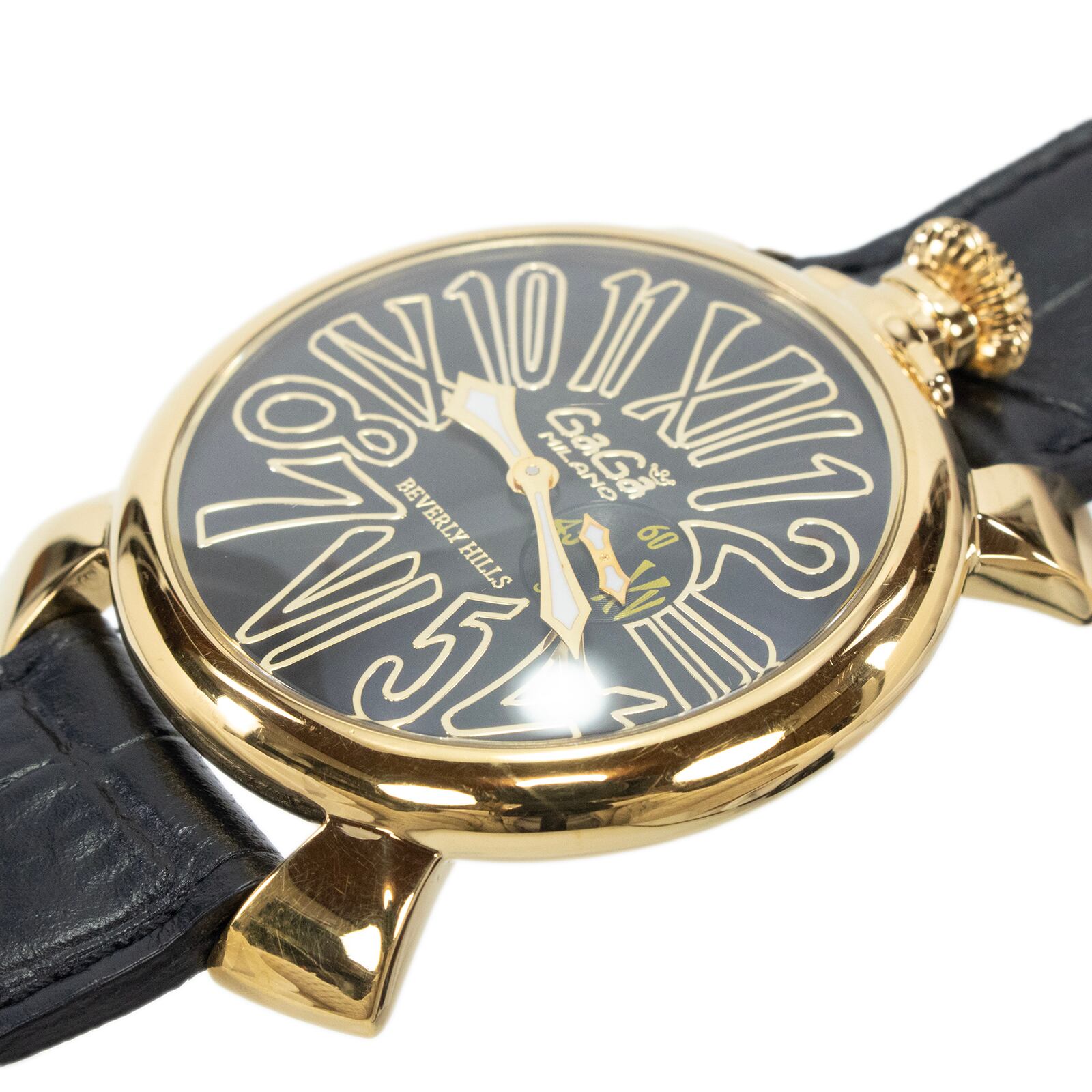 送料無料 ガガミラノ 腕時計 3針 メンズ ビバリーヒルズ 世界250本限定 マヌアーレ スリム46mm 5081 黒 ゴールド ロゴ ブランド 綺麗 Q186