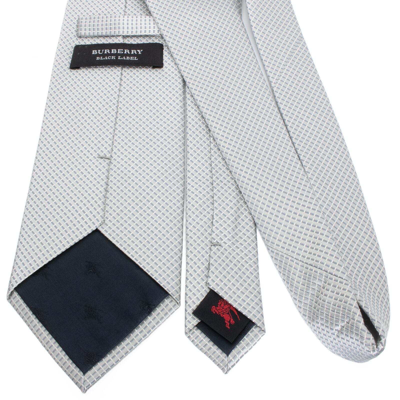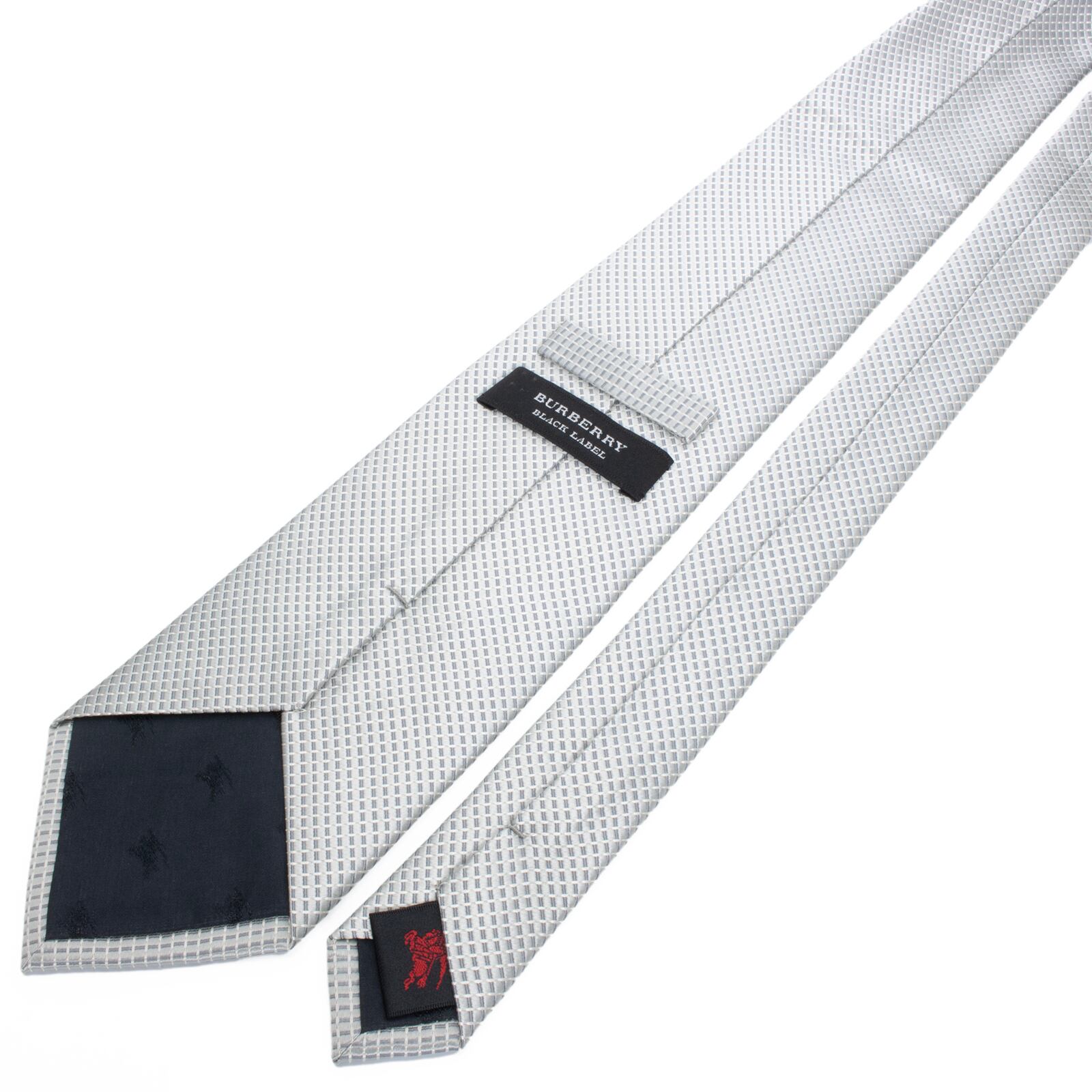 送料無料 バーバリー ネクタイ ジャガードタイ 新品同様 シルバー グレー ビジネス 光沢 四角 スクエアドット シンプル ブランド 綺麗 S511