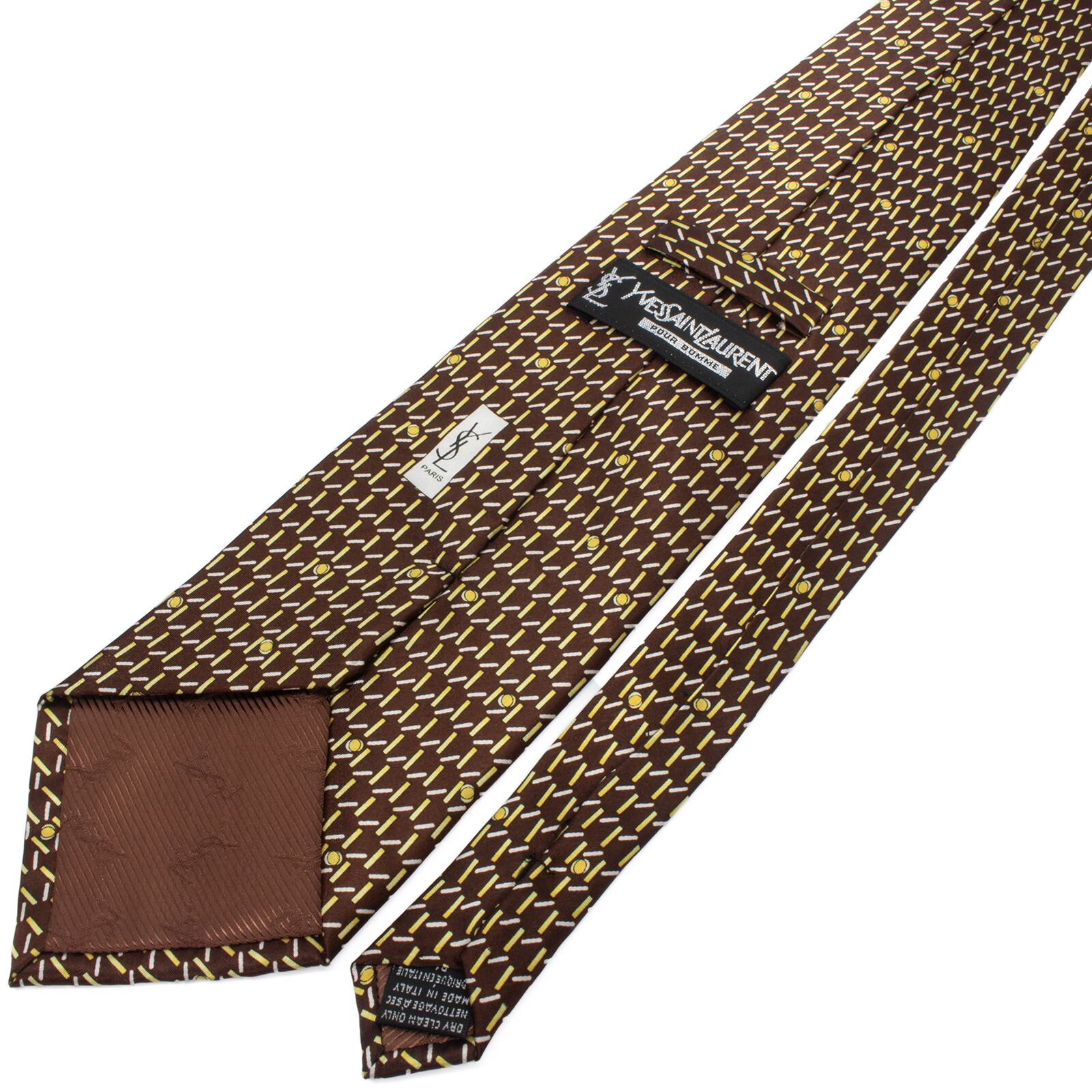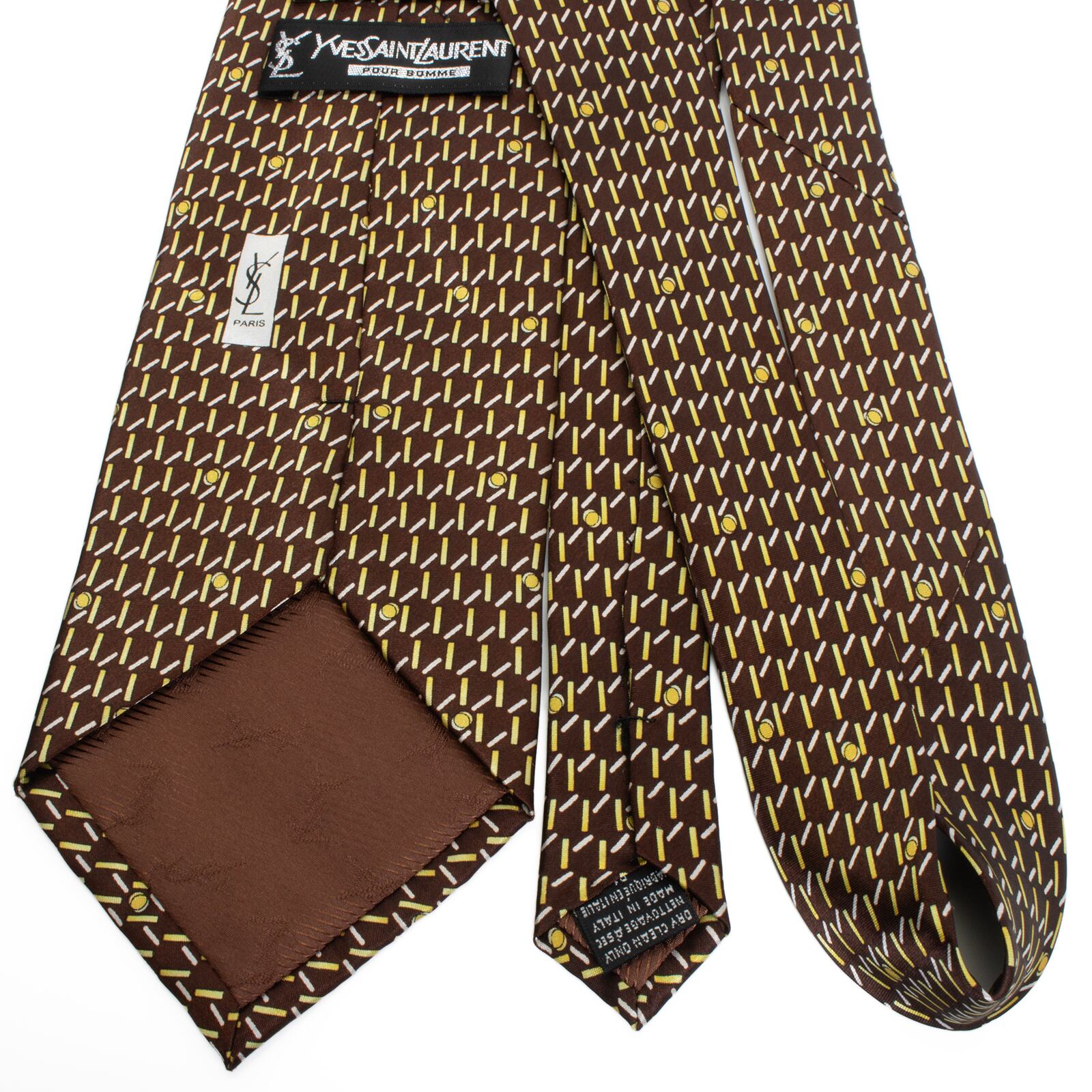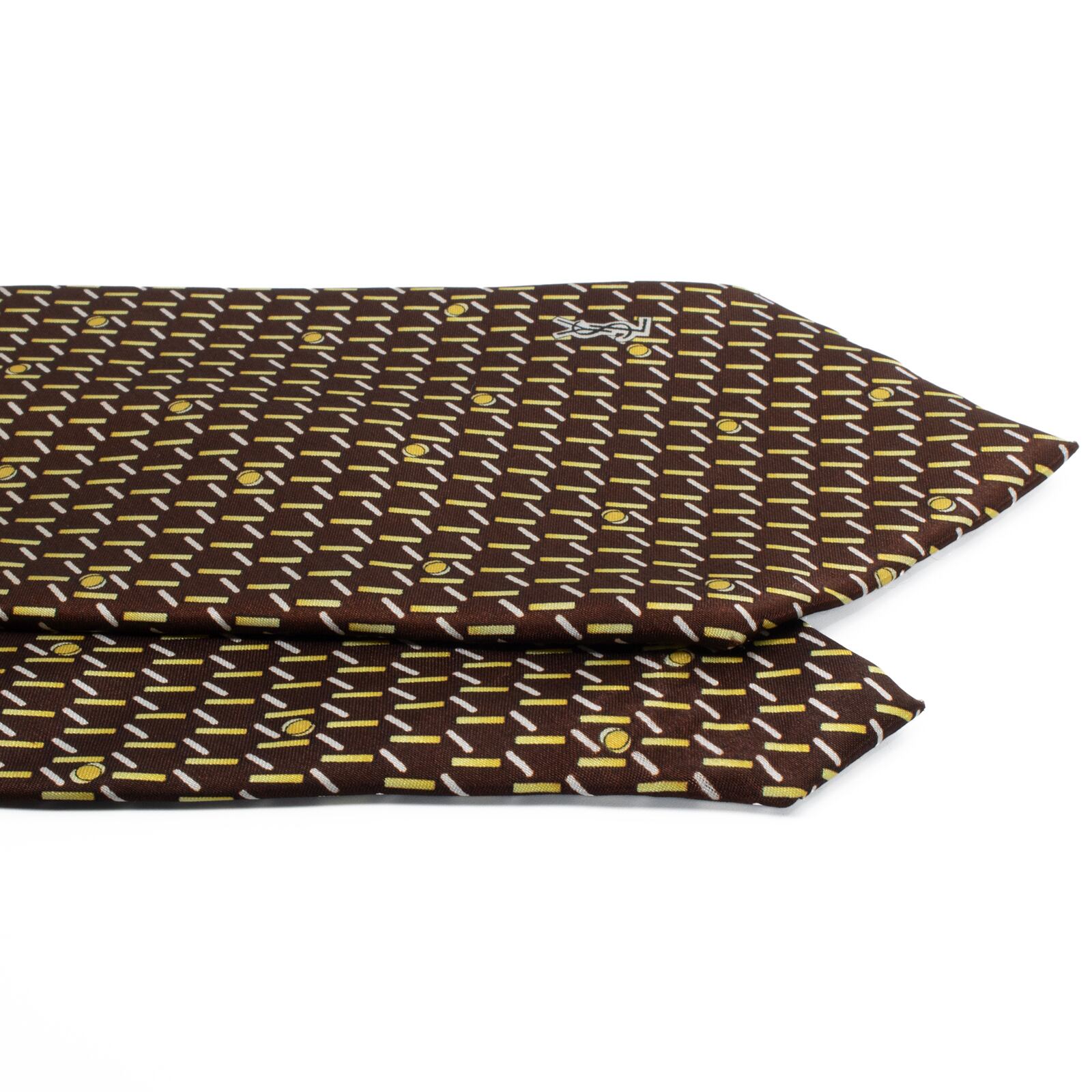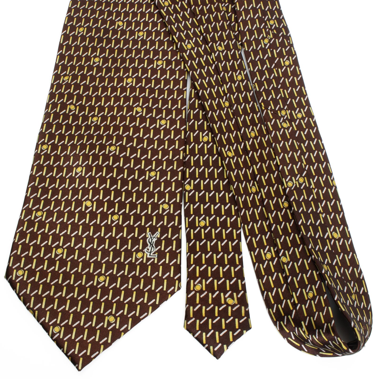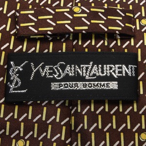 送料無料 サンローラン ネクタイ 新品同様 シルク 茶色 ブラウン 黄色 白 黒 総柄 Y2K 90s 00s 光沢 YSLロゴ マーク ブランド 綺麗 S515