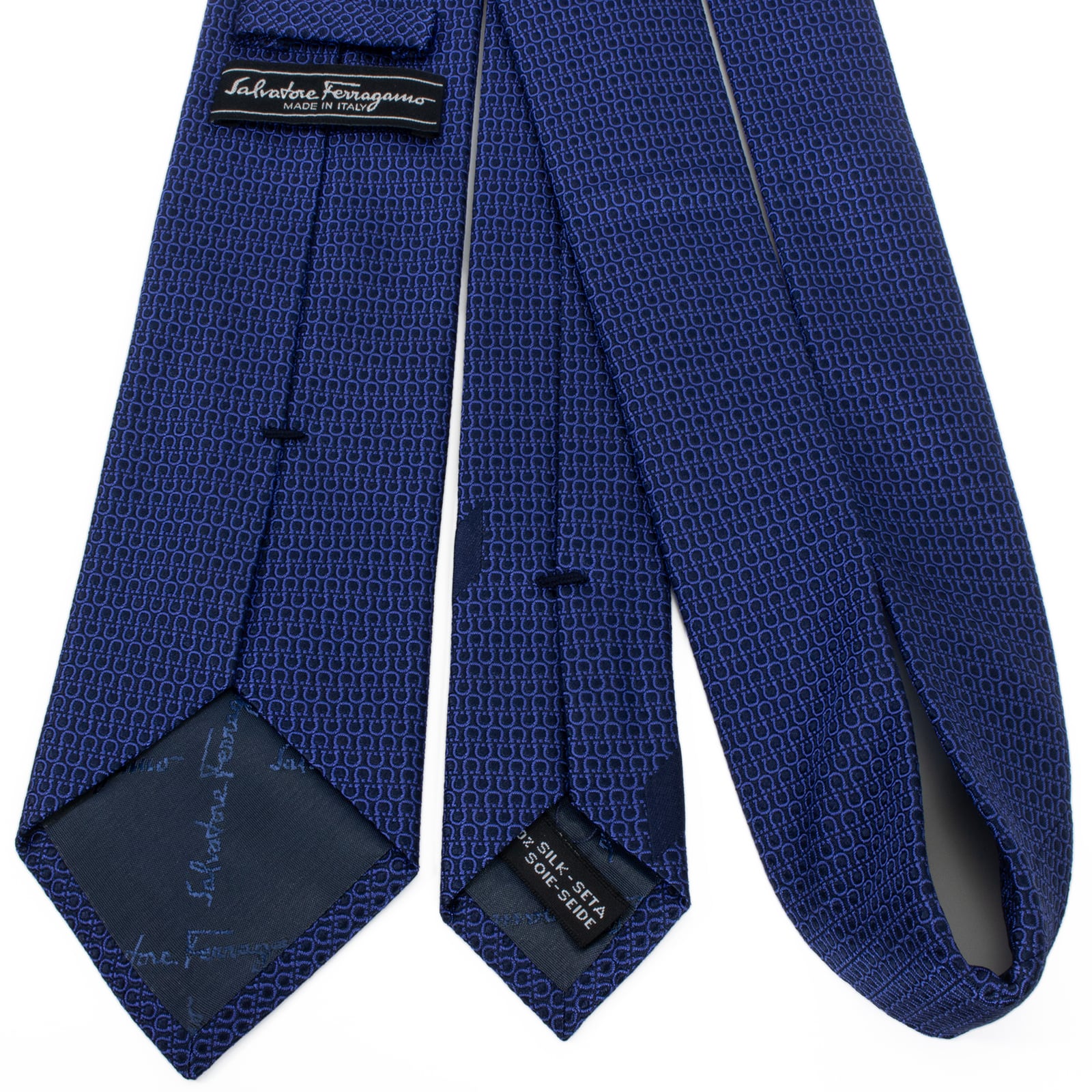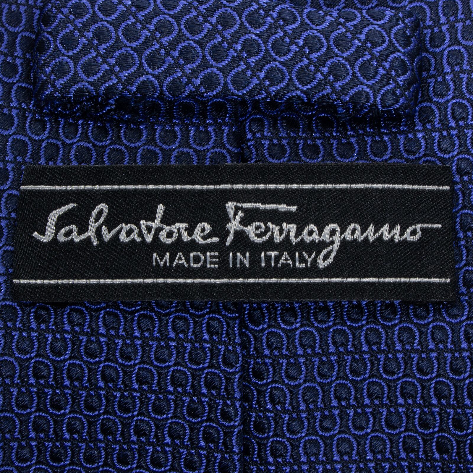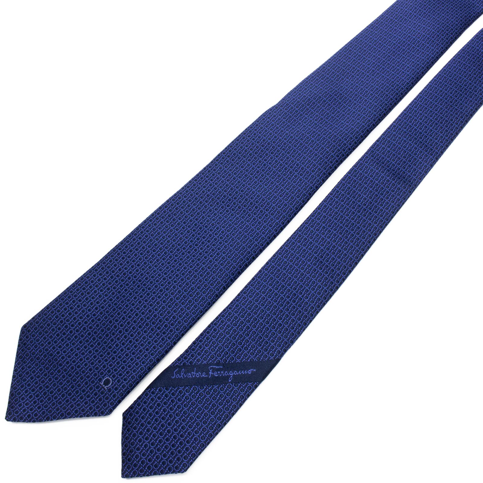 送料無料 フェラガモ ネクタイ レギュラータイ ジャガードタイ 新品 ネイビーブルー 青 総柄 ガンチーニ ロゴ マーク シンプル 綺麗 S516