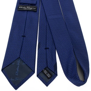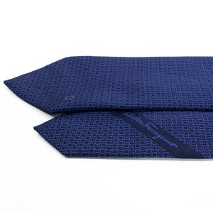 こちらはメゾンの象徴が知的に連なる、フェラガモのネクタイでございます。