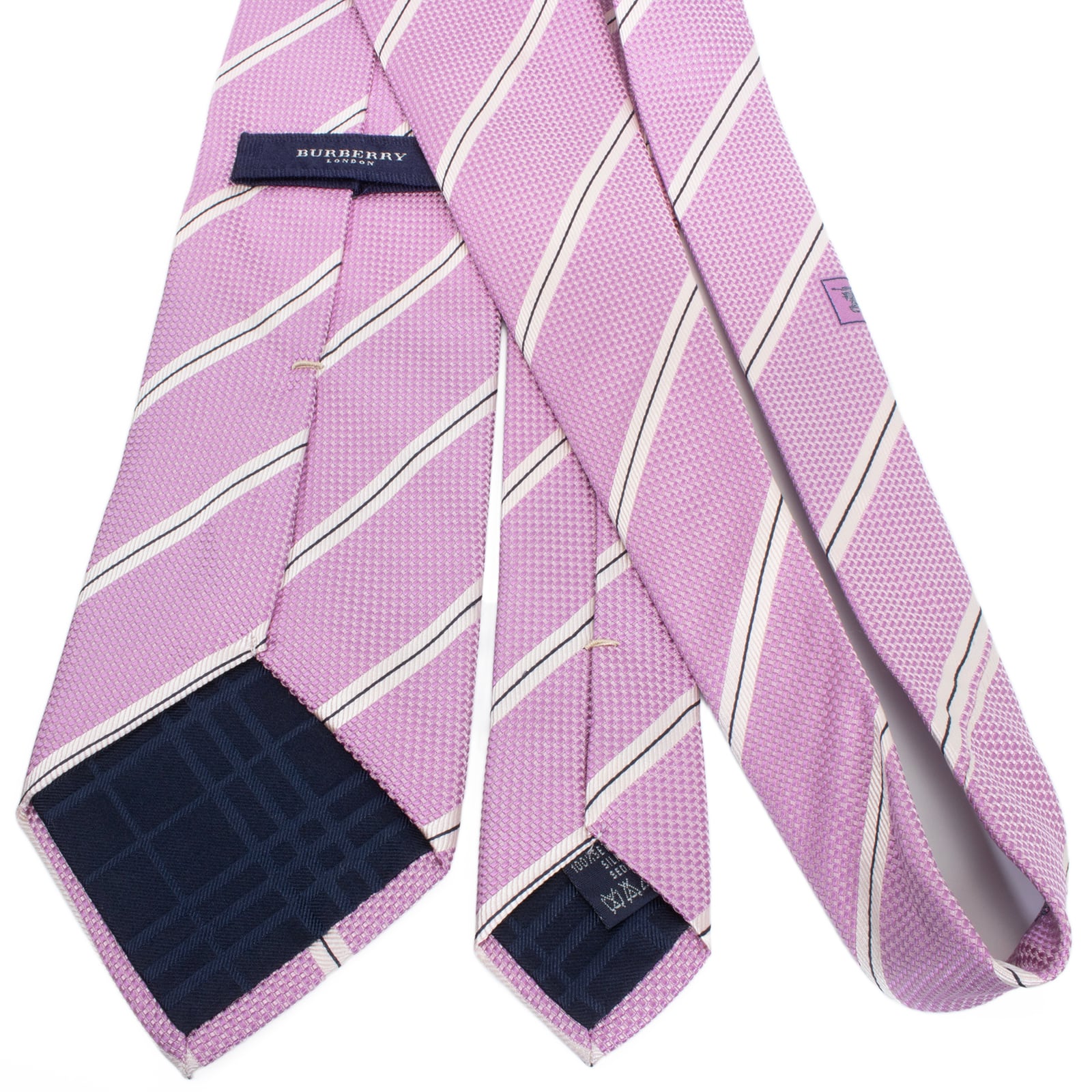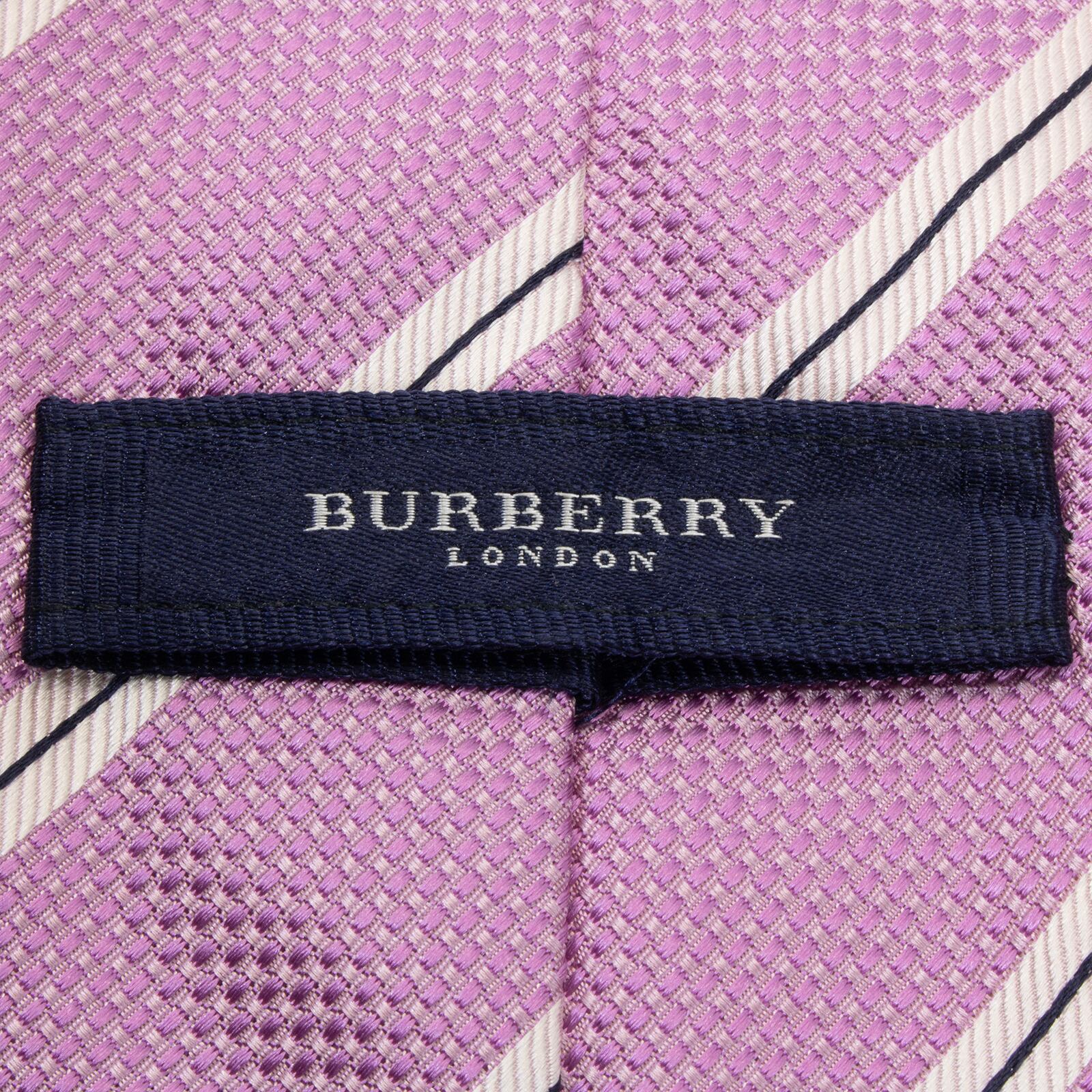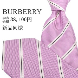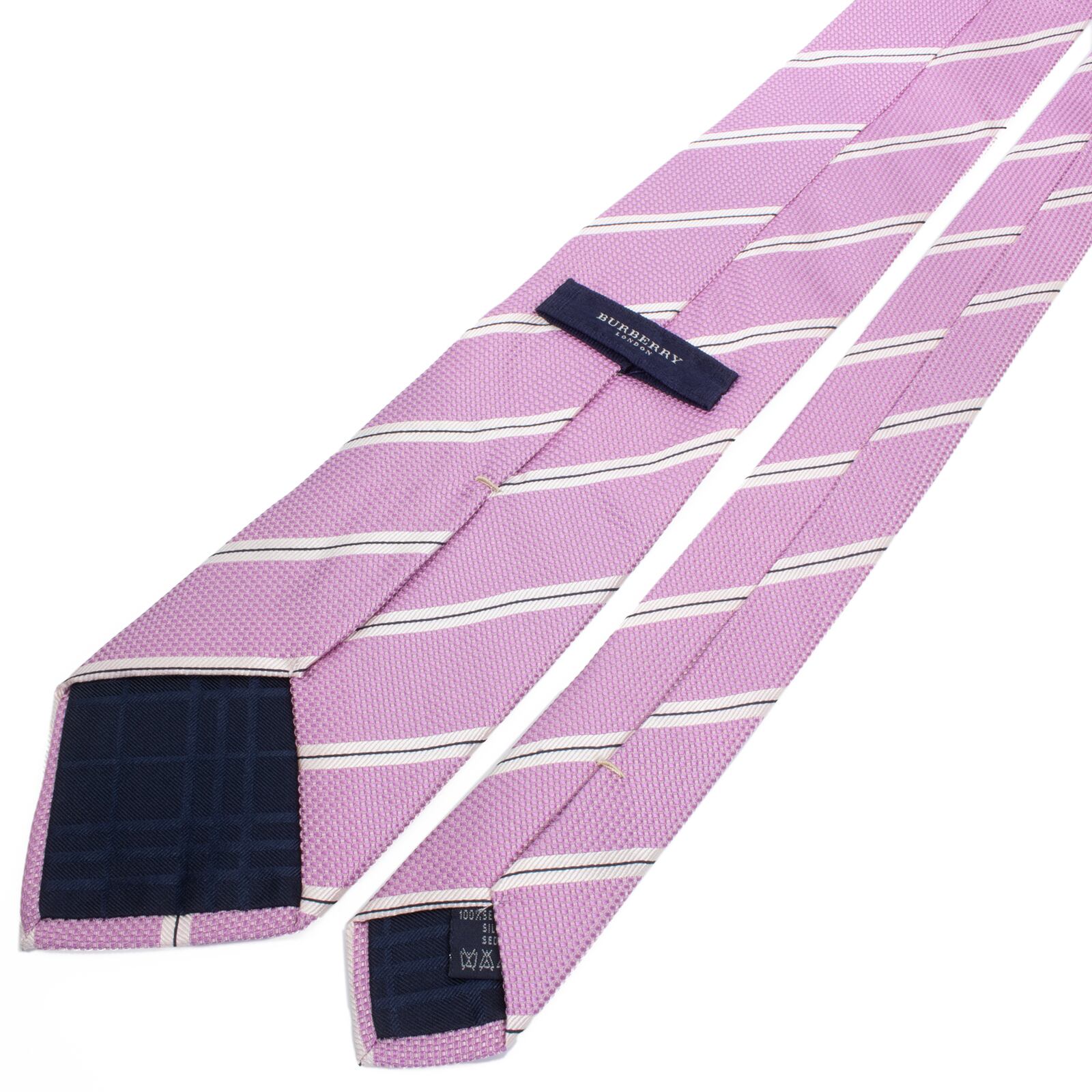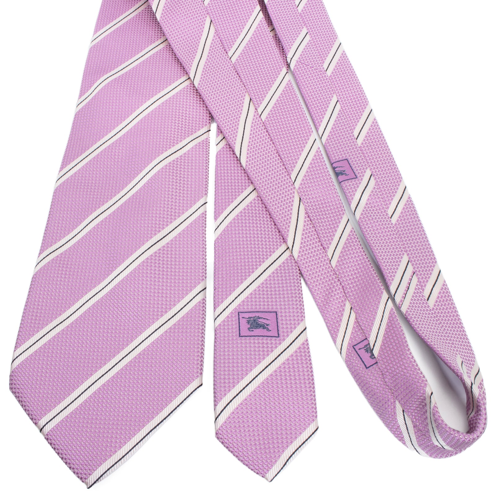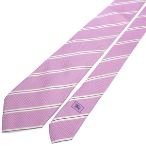 送料無料 バーバリー ネクタイ ジャガードタイ 新品同様 ピンクパープル 白 ホワイト 黒 ストライプ ホースロゴ マーク シンプル 綺麗 S517