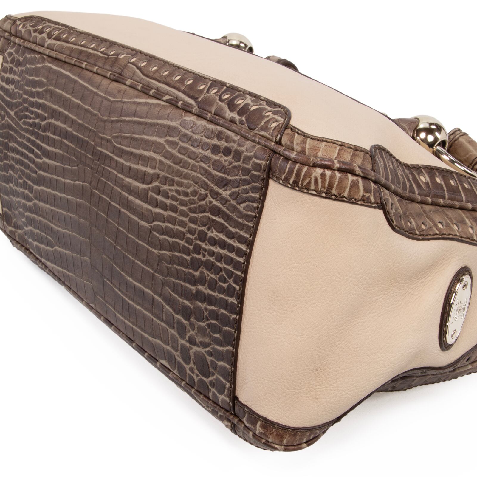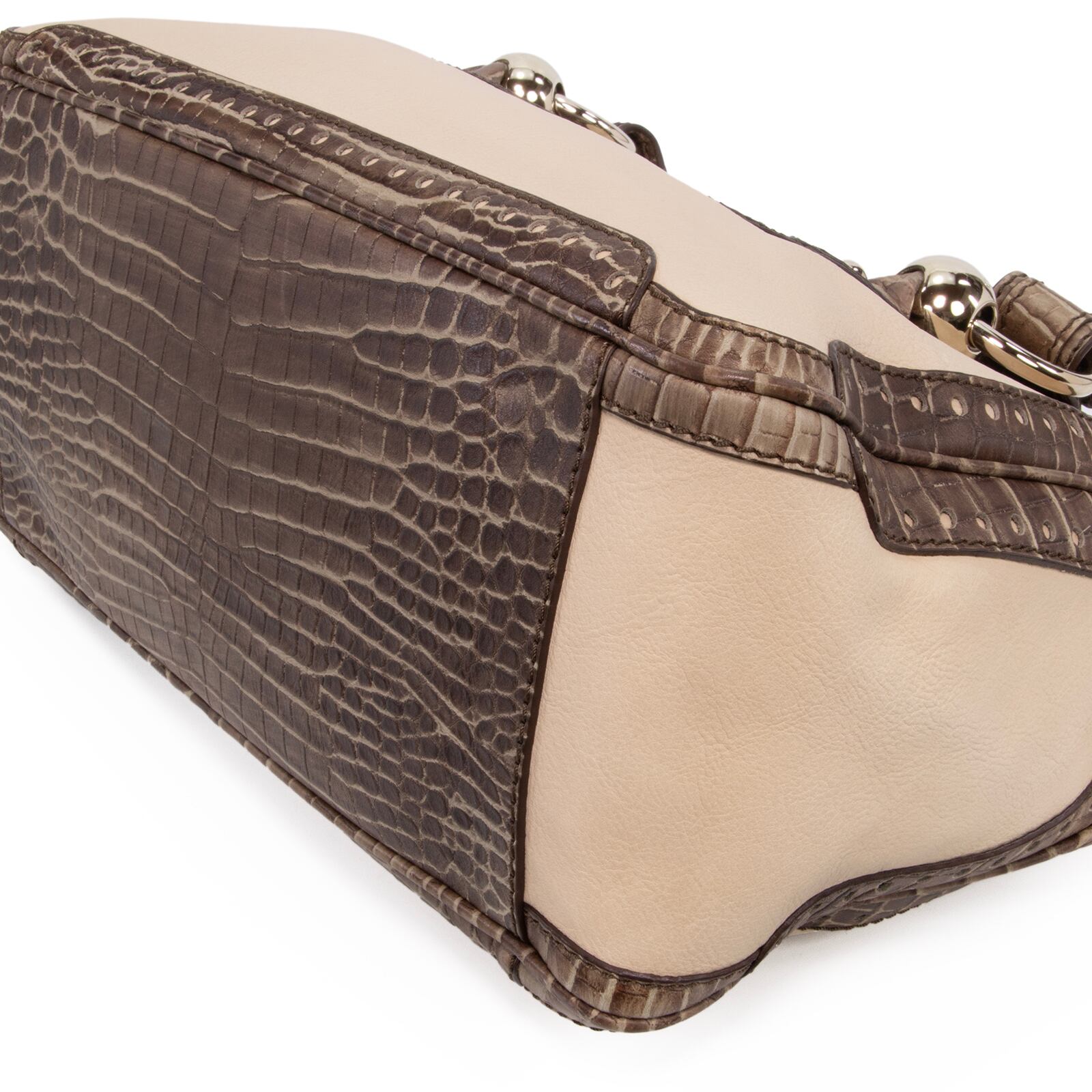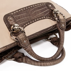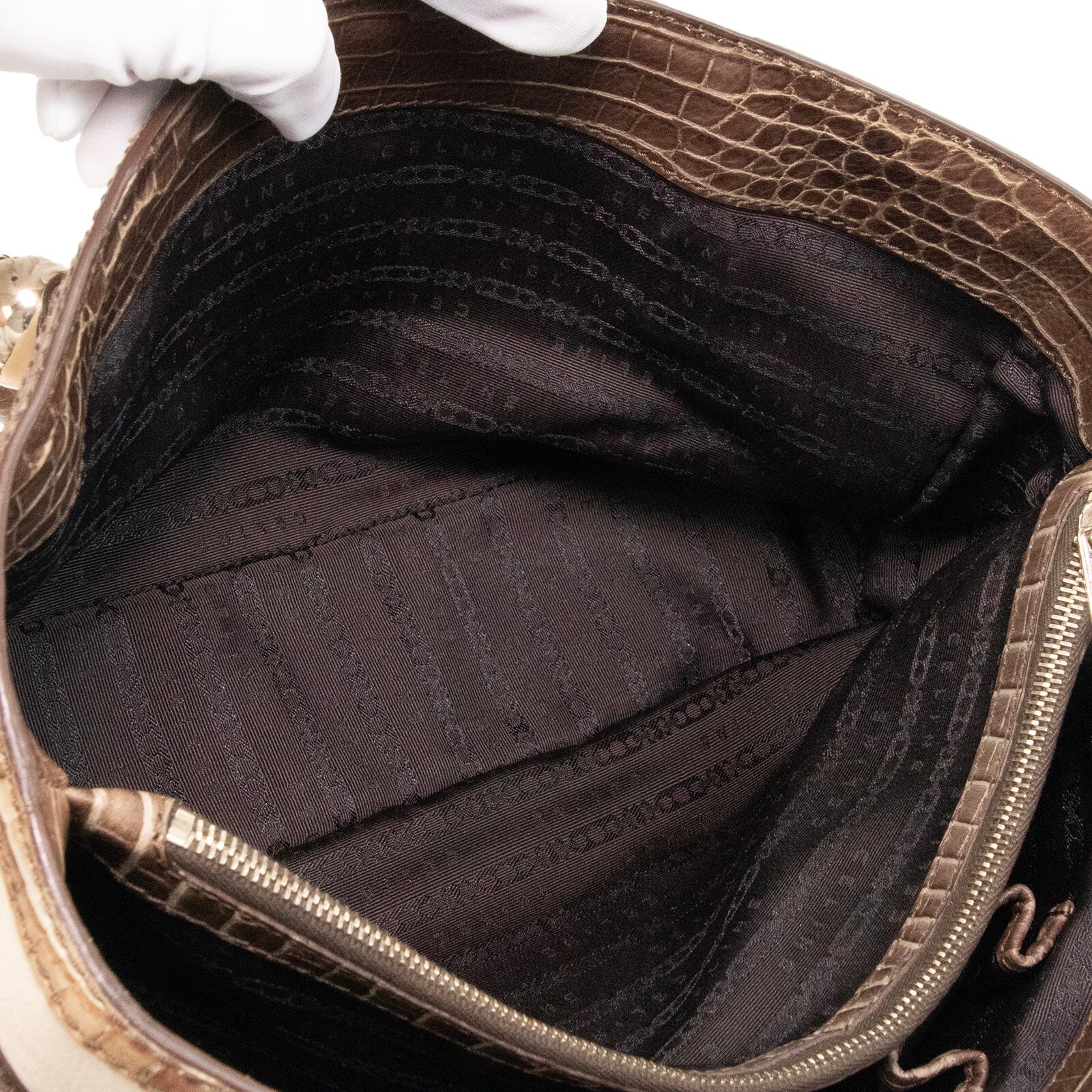 本物 送料無料 セリーヌ ハンドバッグ レディース クロコダイル型押し ブギーバッグ ベージュ 茶色 マカダム ロゴ マーク 鞄 バック I268