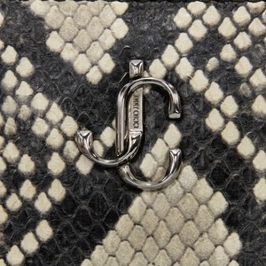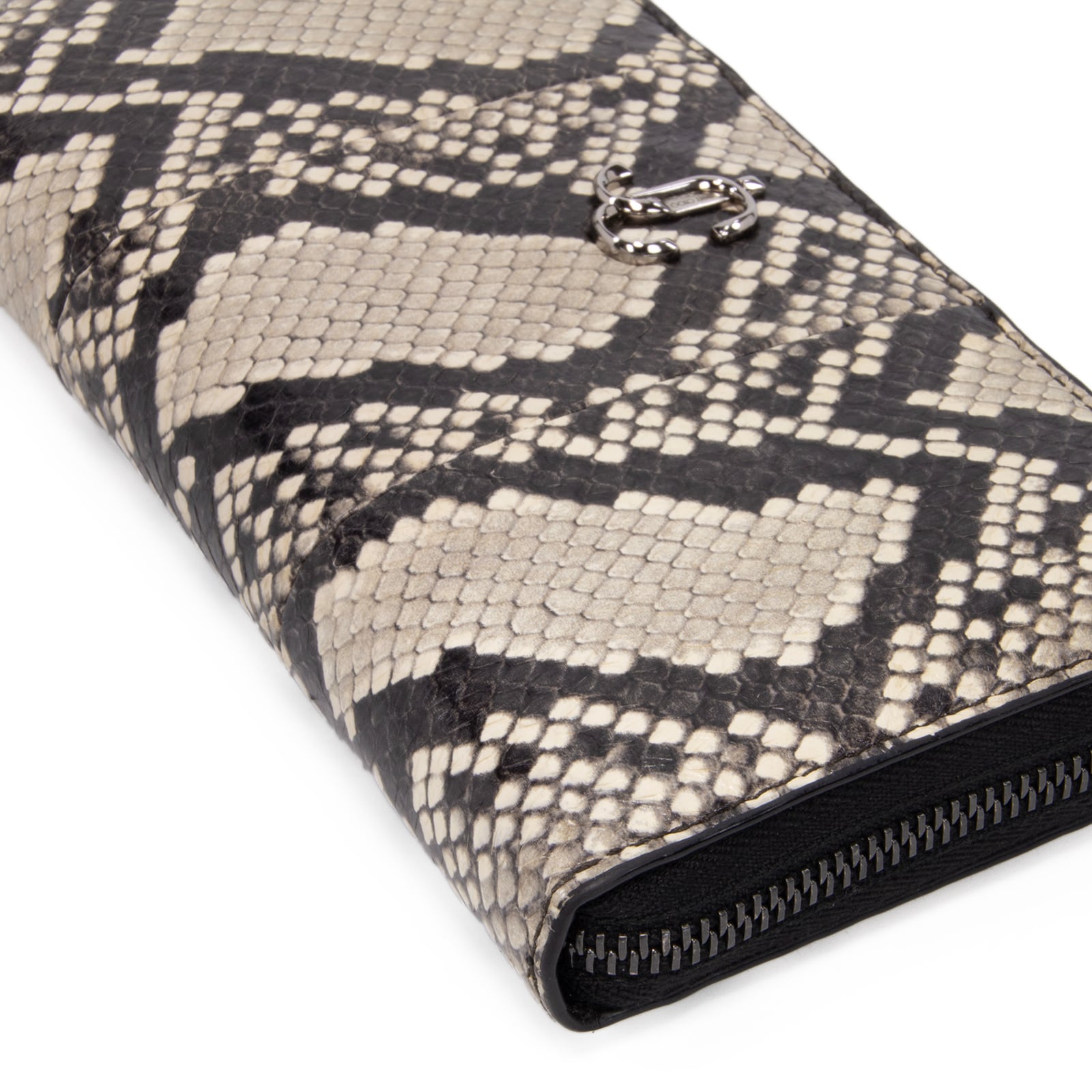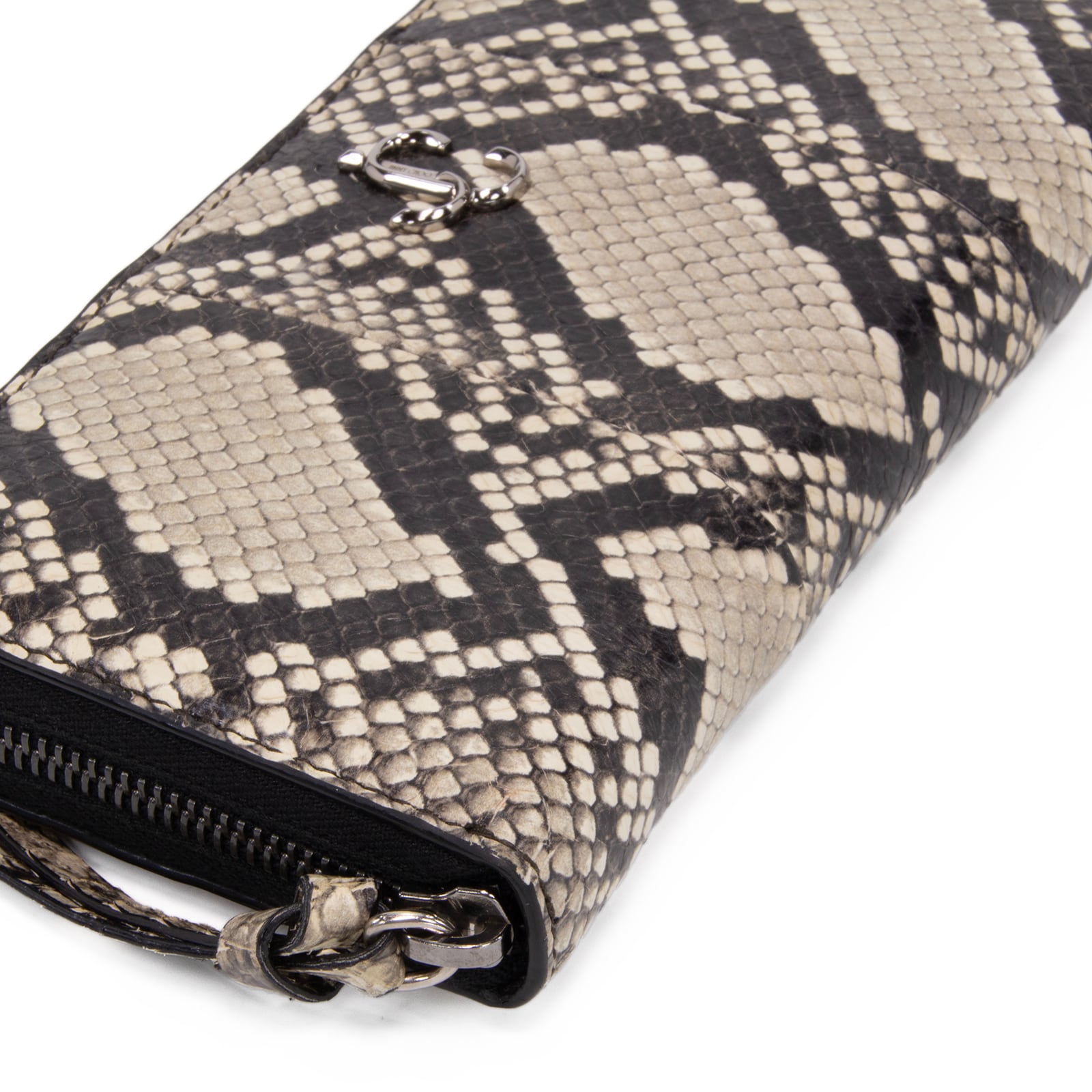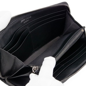 本物 送料無料 ジミーチュウ 長財布 新品同様 ラウンドファスナー メンズ レディース パイソン型押しレザー 黒 グレー 蛇柄 JCマーク D195