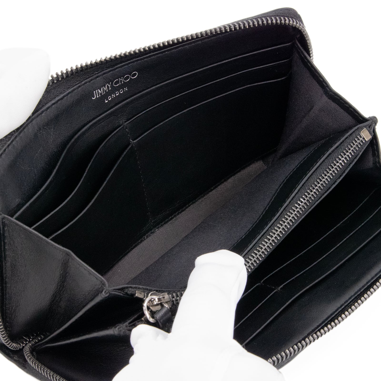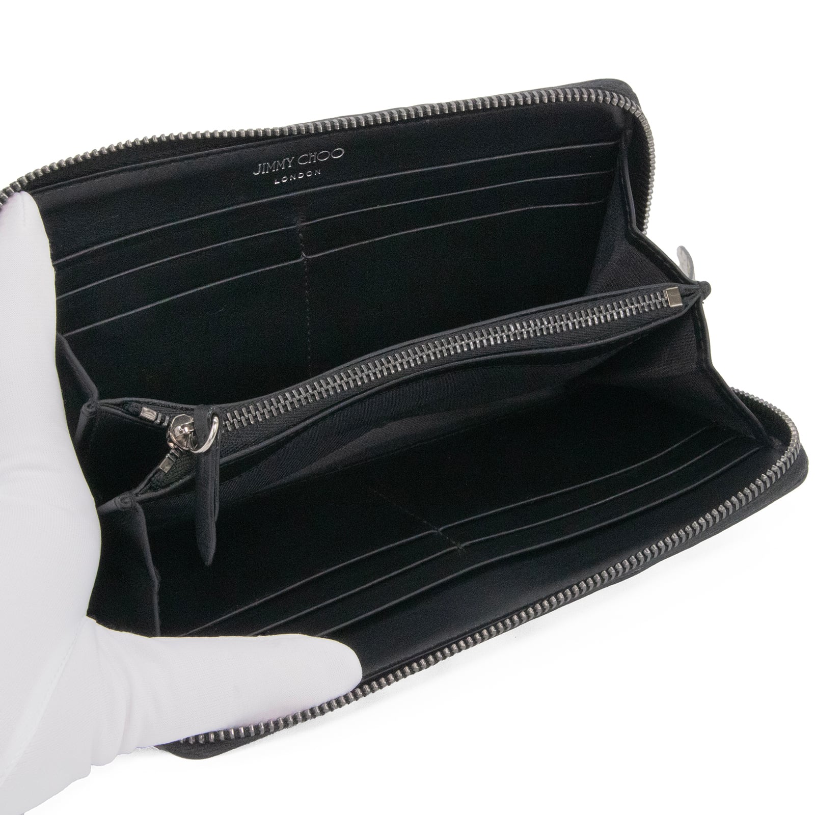 こちらは他ではなかなか見られない個性的で美しい佇まいをした、ジミーチュウのハンネ・ラウンドファスナーでございます。