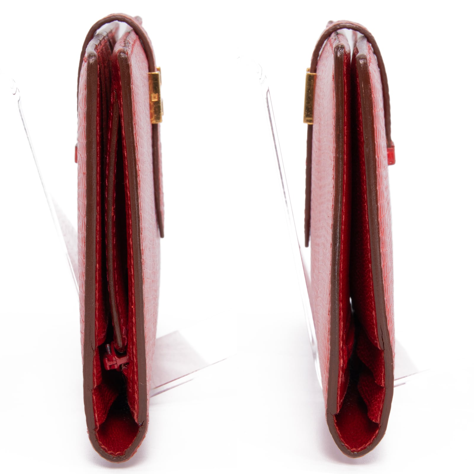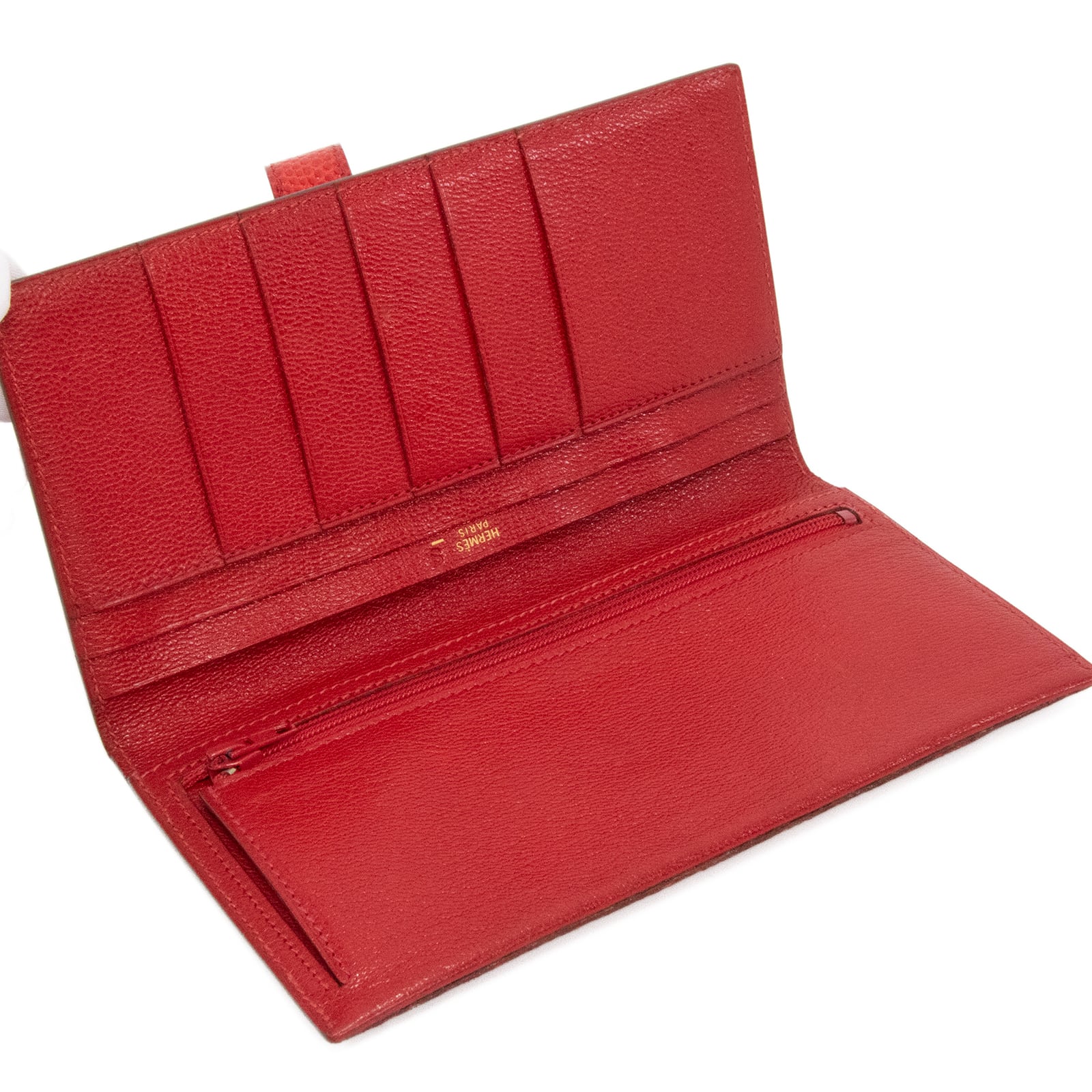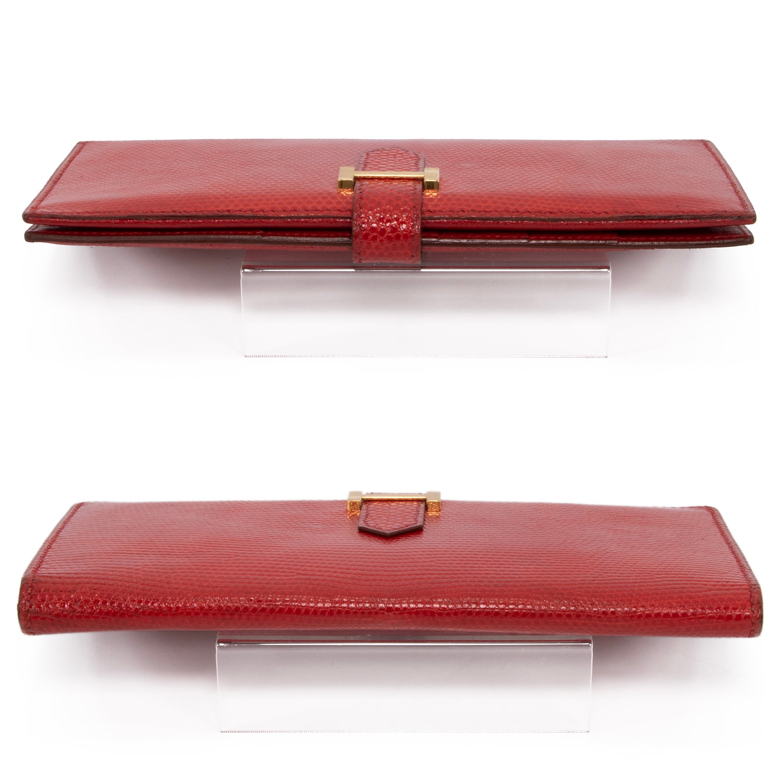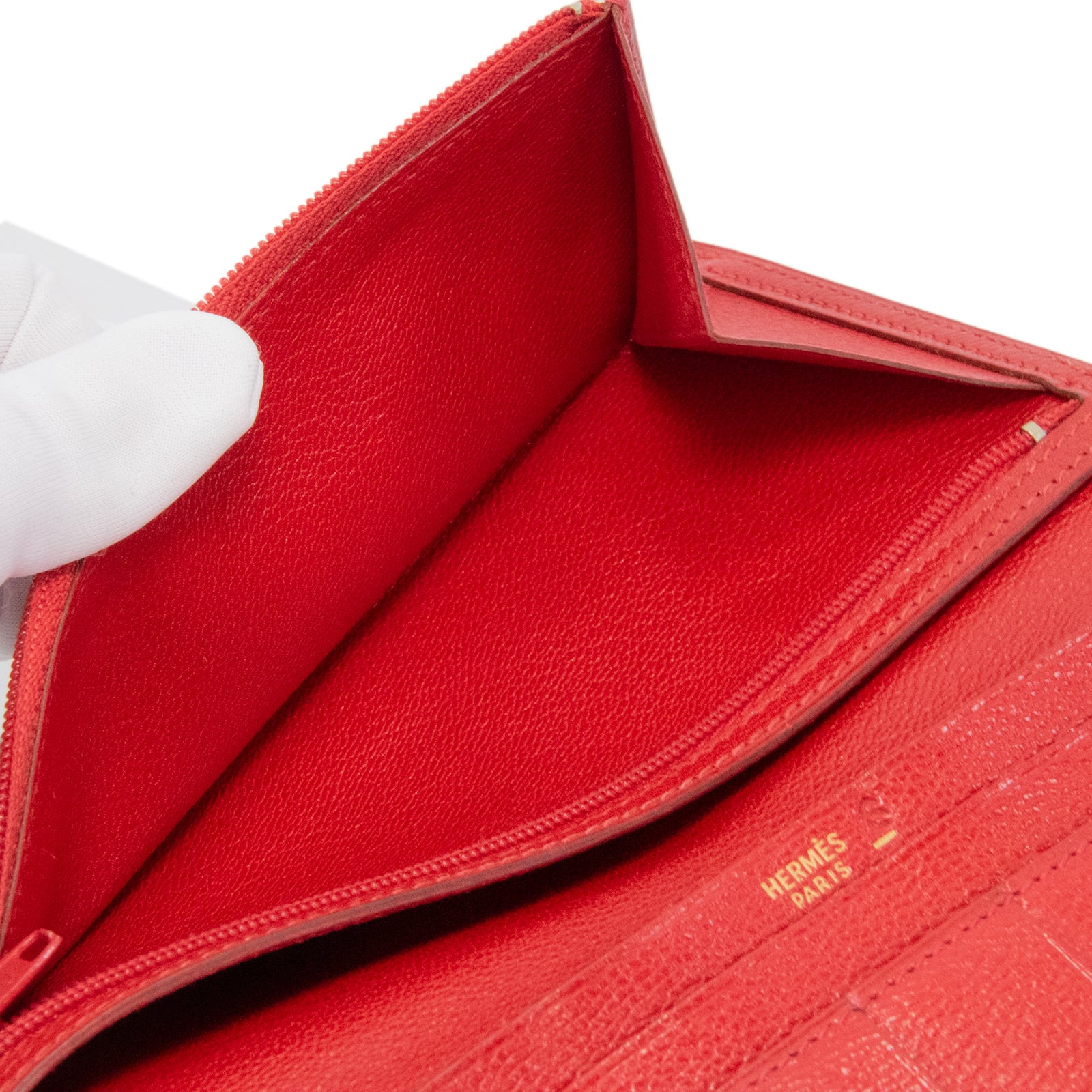 本物 送料無料 エルメス 長財布 二つ折り財布 見開きタイプ レディース リザード ベアン クラシック ヴァーミリオン 赤 レッド 珍しい 最高級 トカゲの革 エキゾチックレザー スリム スマート Hゴールド金具 小銭入れあり ハイブランド おしゃれ D196