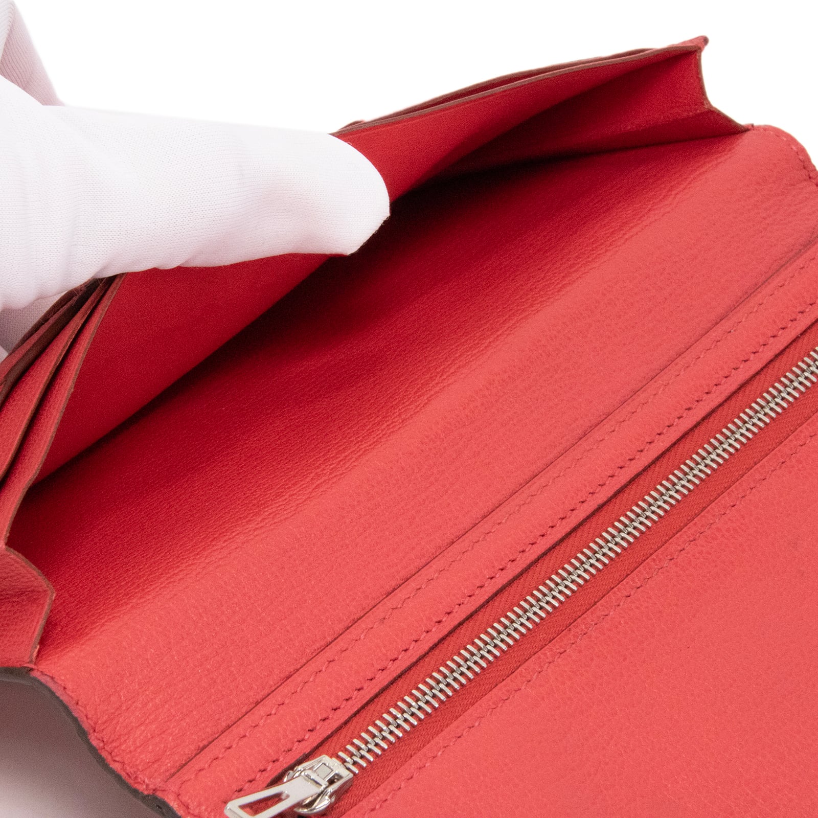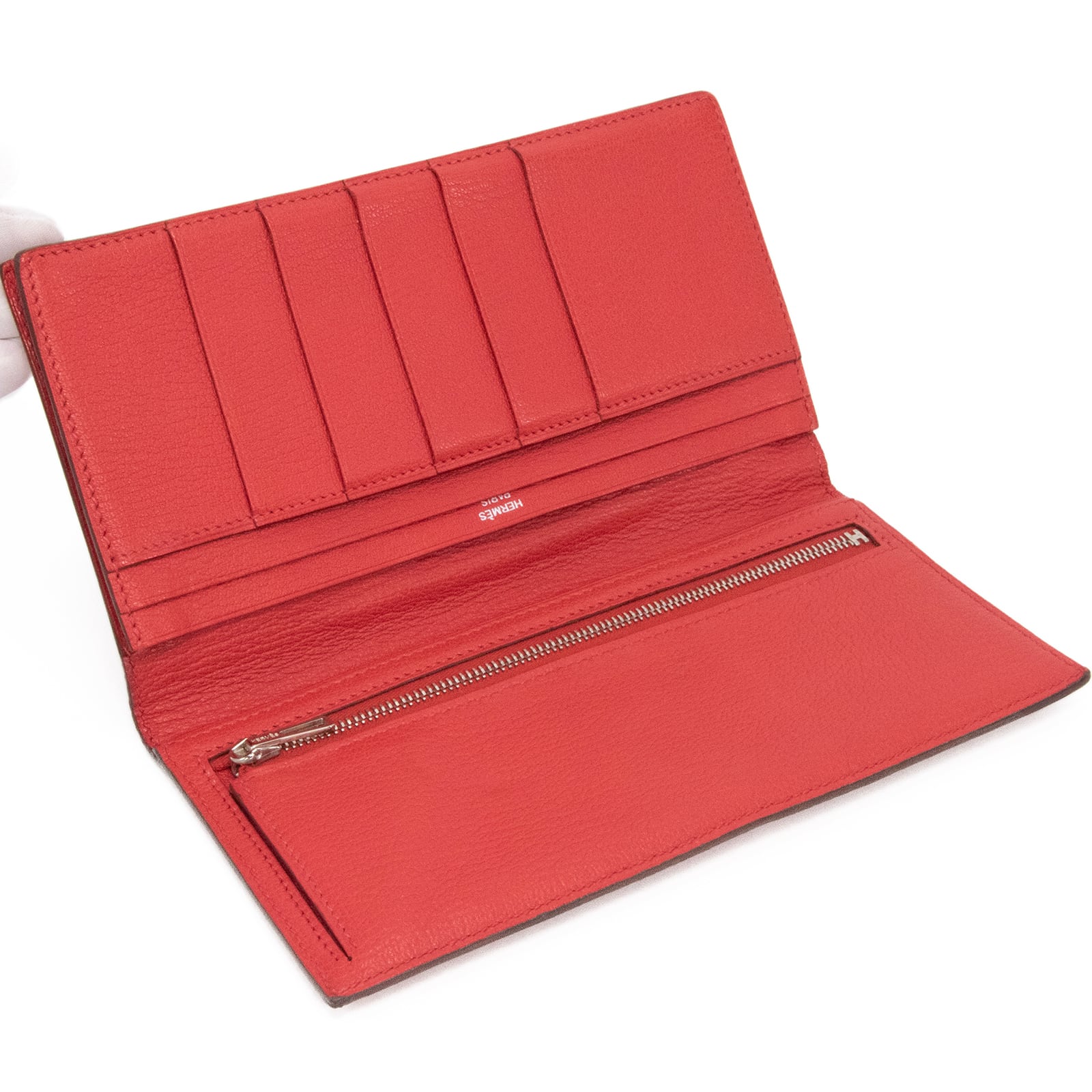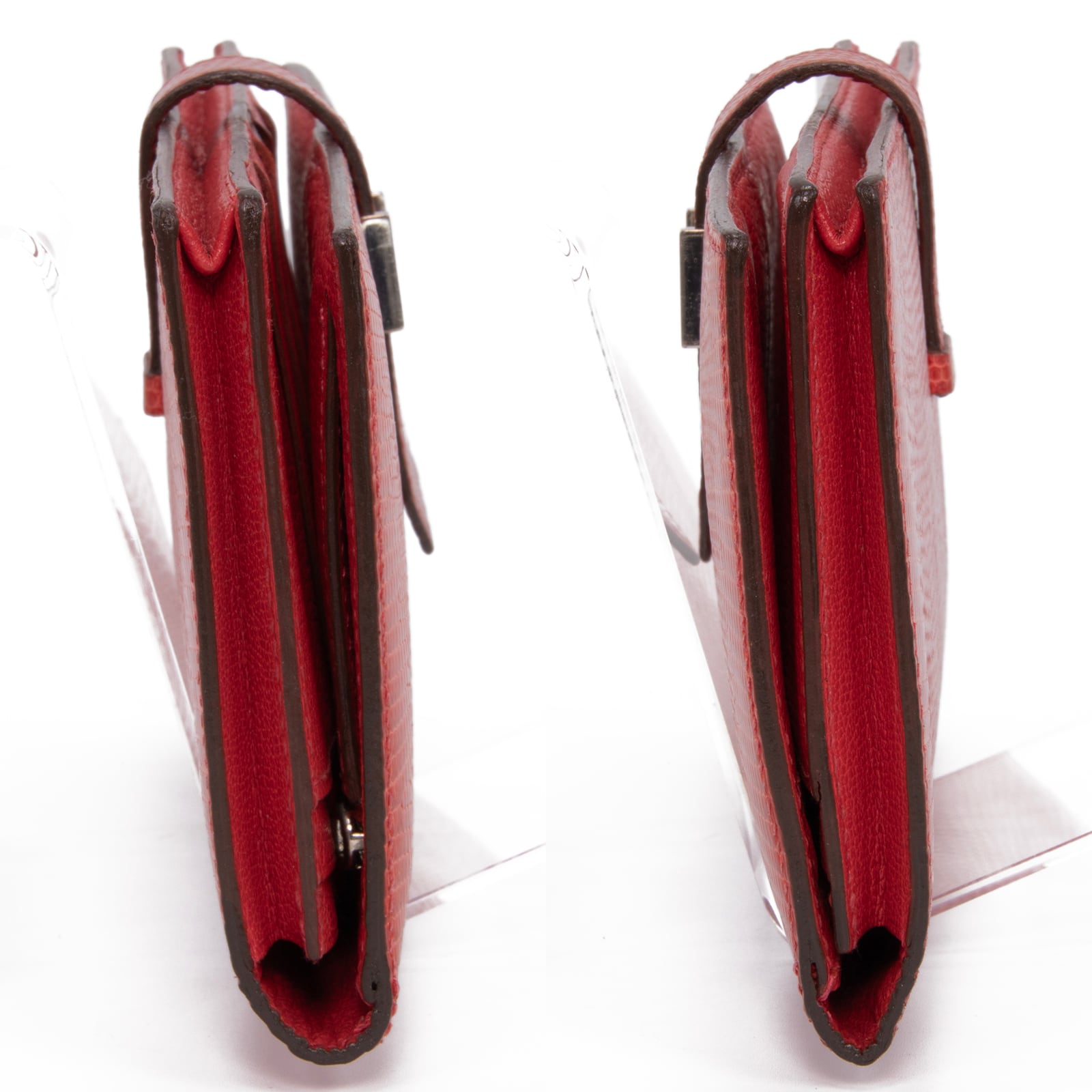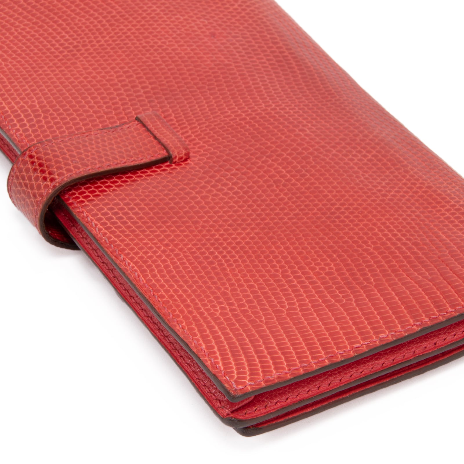 本物 送料無料 エルメス 長財布 二つ折り財布 レディース リザード ベアン スフレ ポピーレッド トカゲの本革 綺麗 Hシルバー金具 D197