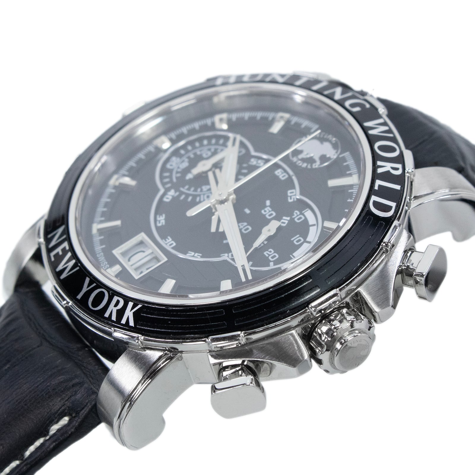 送料無料 ハンティングワールド 腕時計 メンズ イリス HW913-BK 黒 ブラック クロノグラフ ビッグデイト Y2K ロゴ マーク ブランド X403