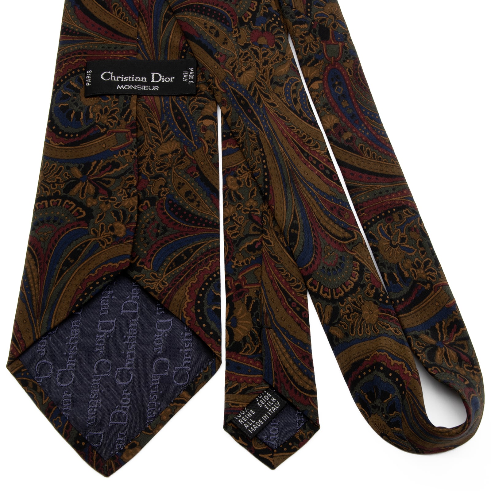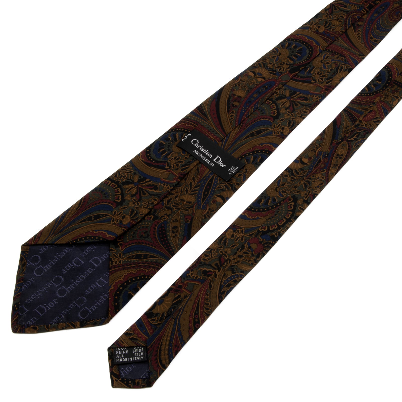 送料無料 ディオール ネクタイ レギュラータイ 新品同様 シルク 茶色 ブラウン 青 赤 緑 ペイズリー 総柄 Y2K 花 ブランド イタリア製 P544