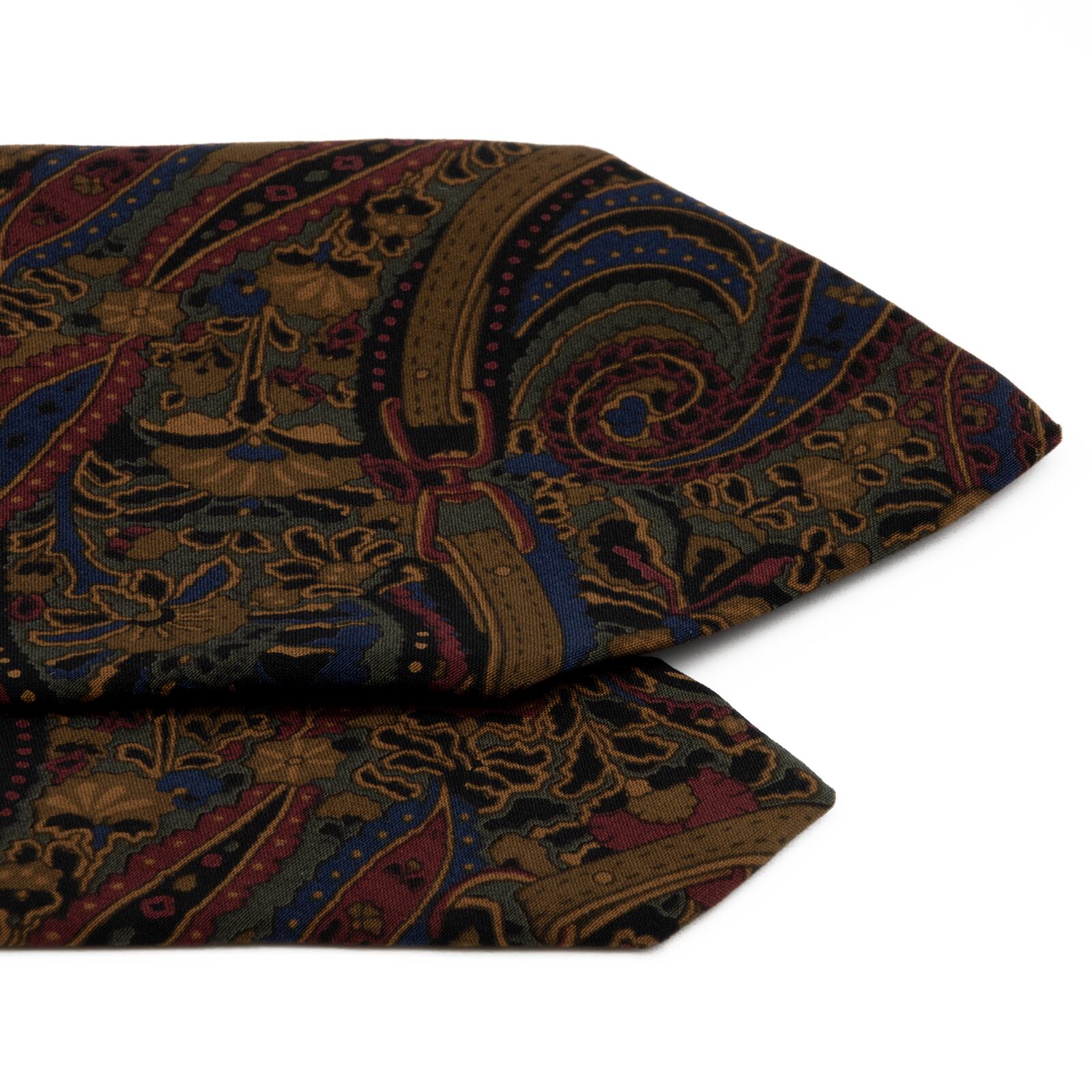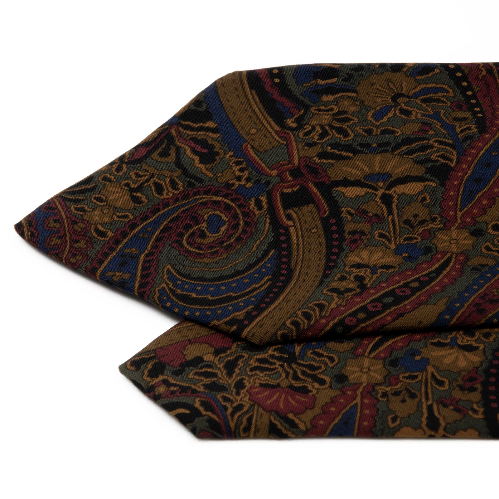 イタリア製の滑らかなシルクキャンバスに、伝統的なペイズリー柄が大胆な解釈で描かれました。