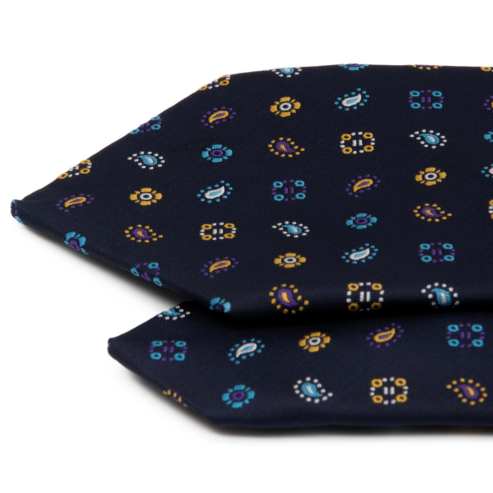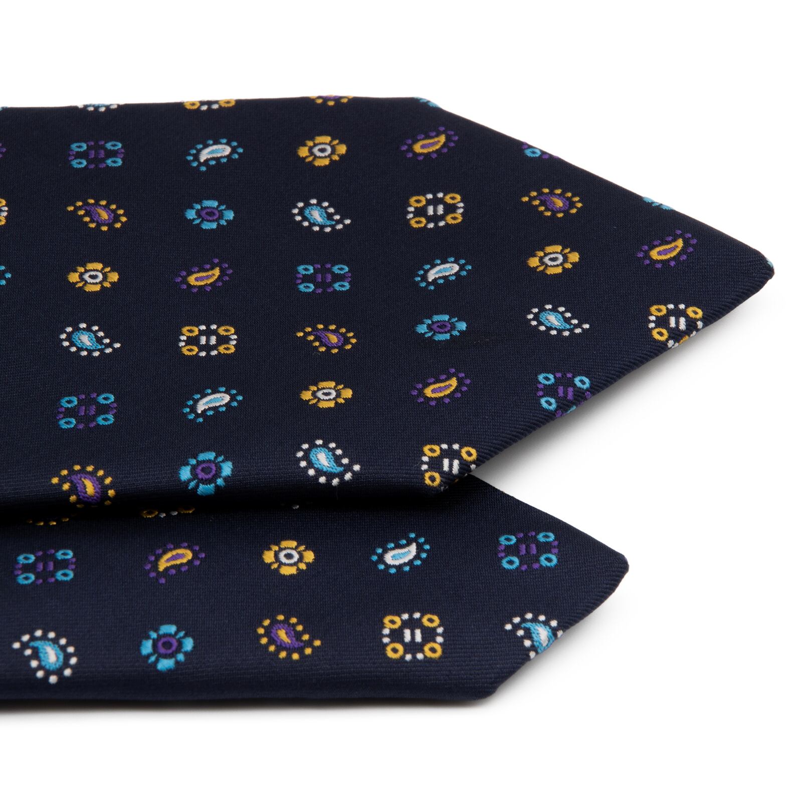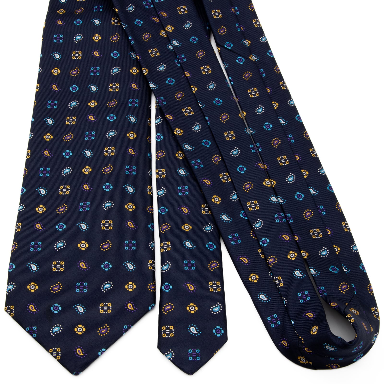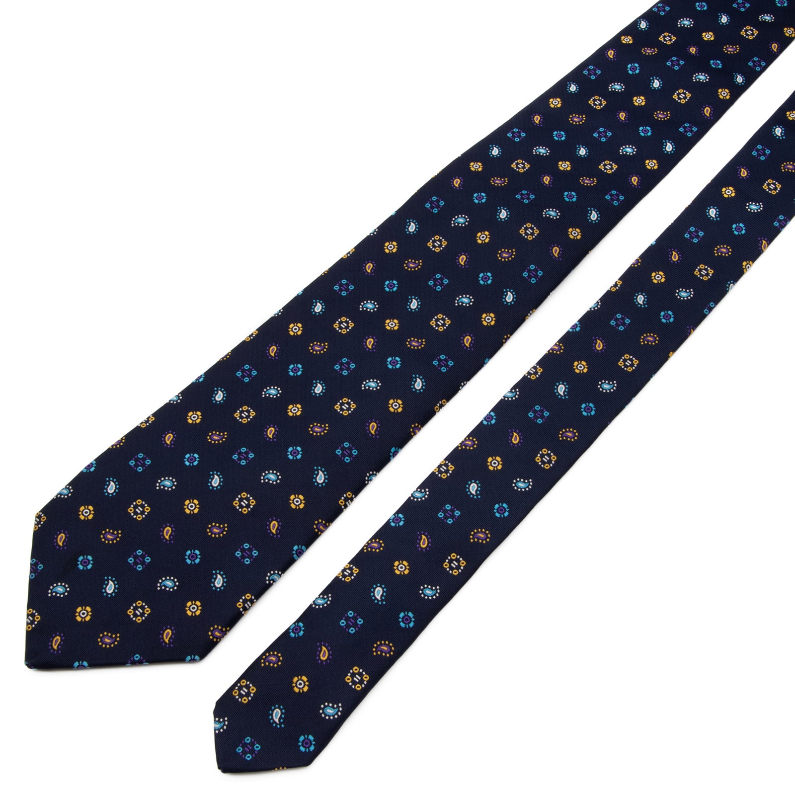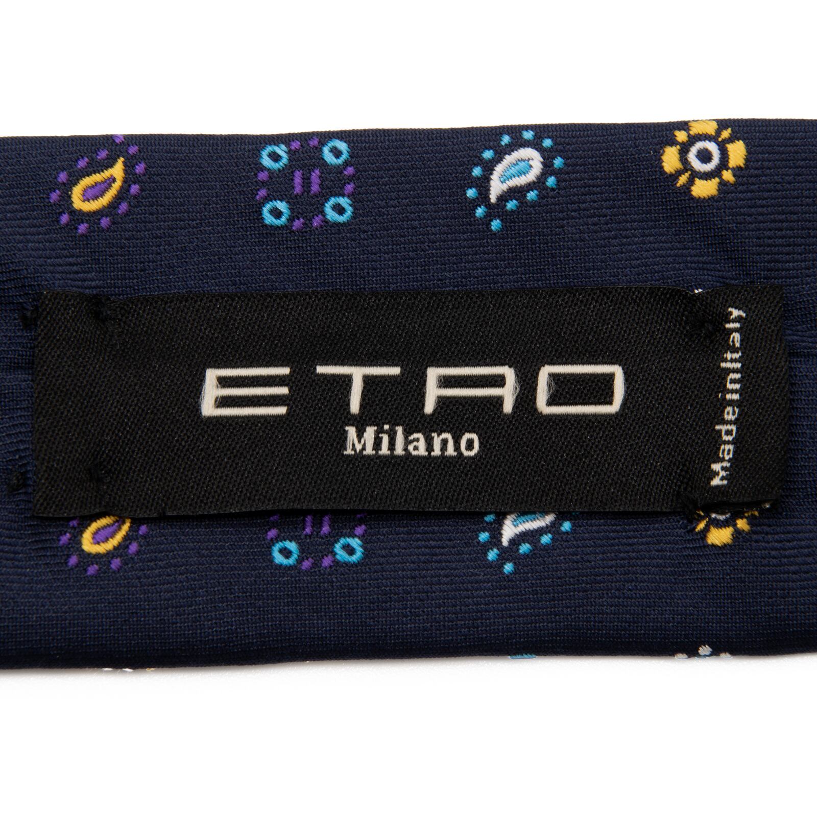 送料無料 エトロ ネクタイ レギュラータイ ジャガード ネイビーブルー 黄色 水色 紫 白 ペイズリー 総柄 花 ブランド イタリア 綺麗 P545