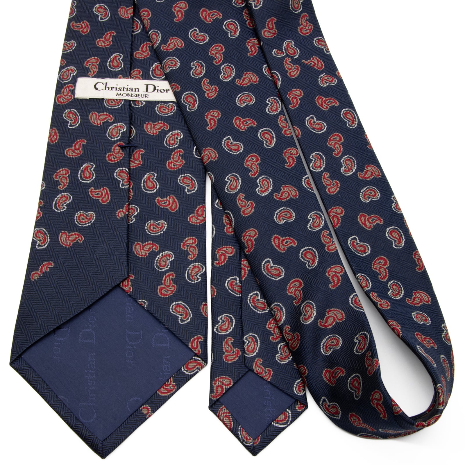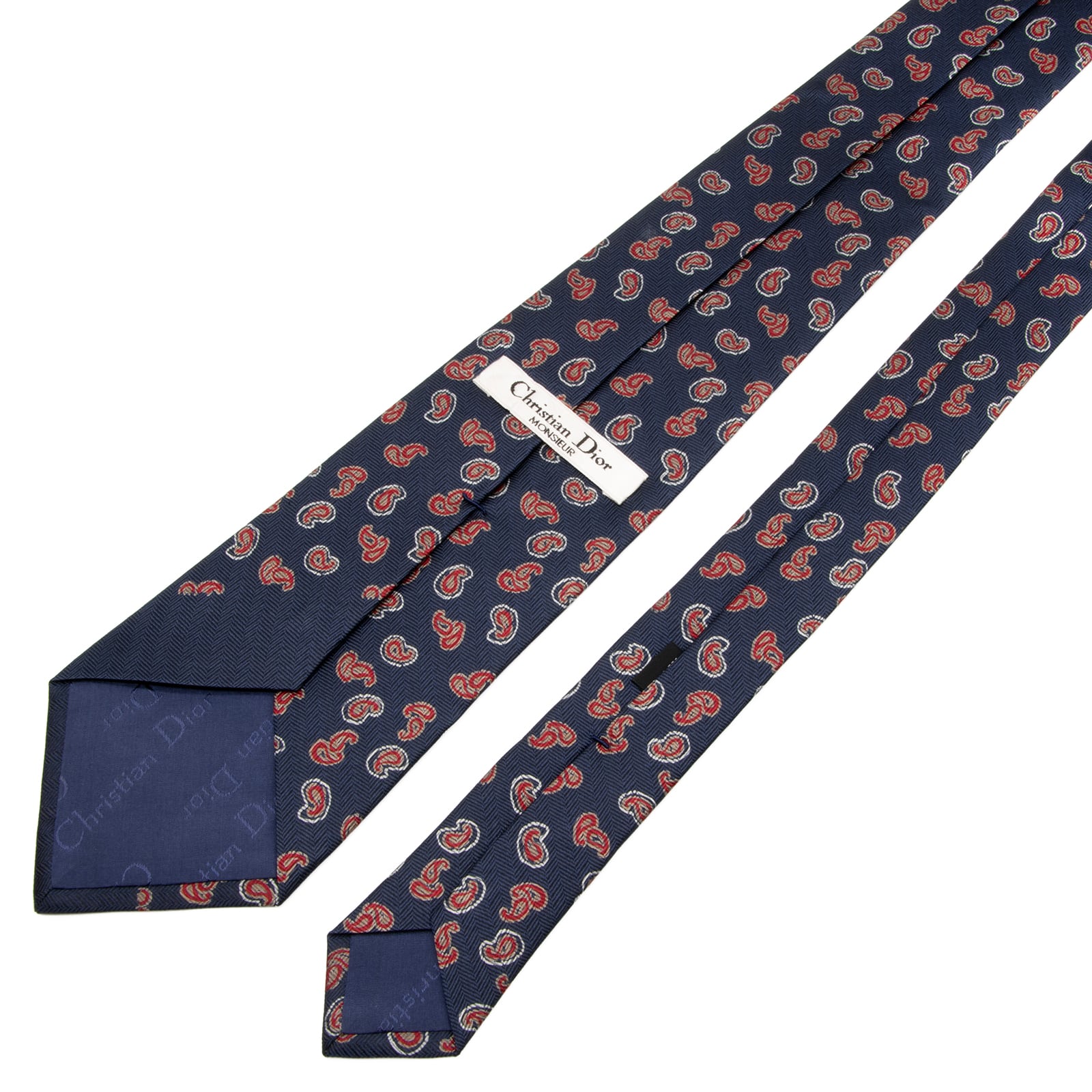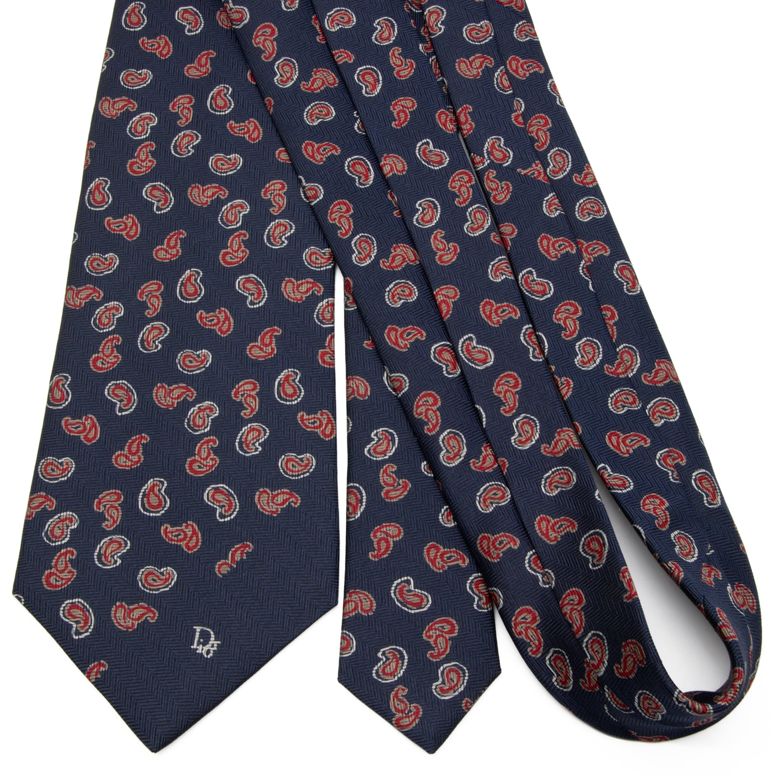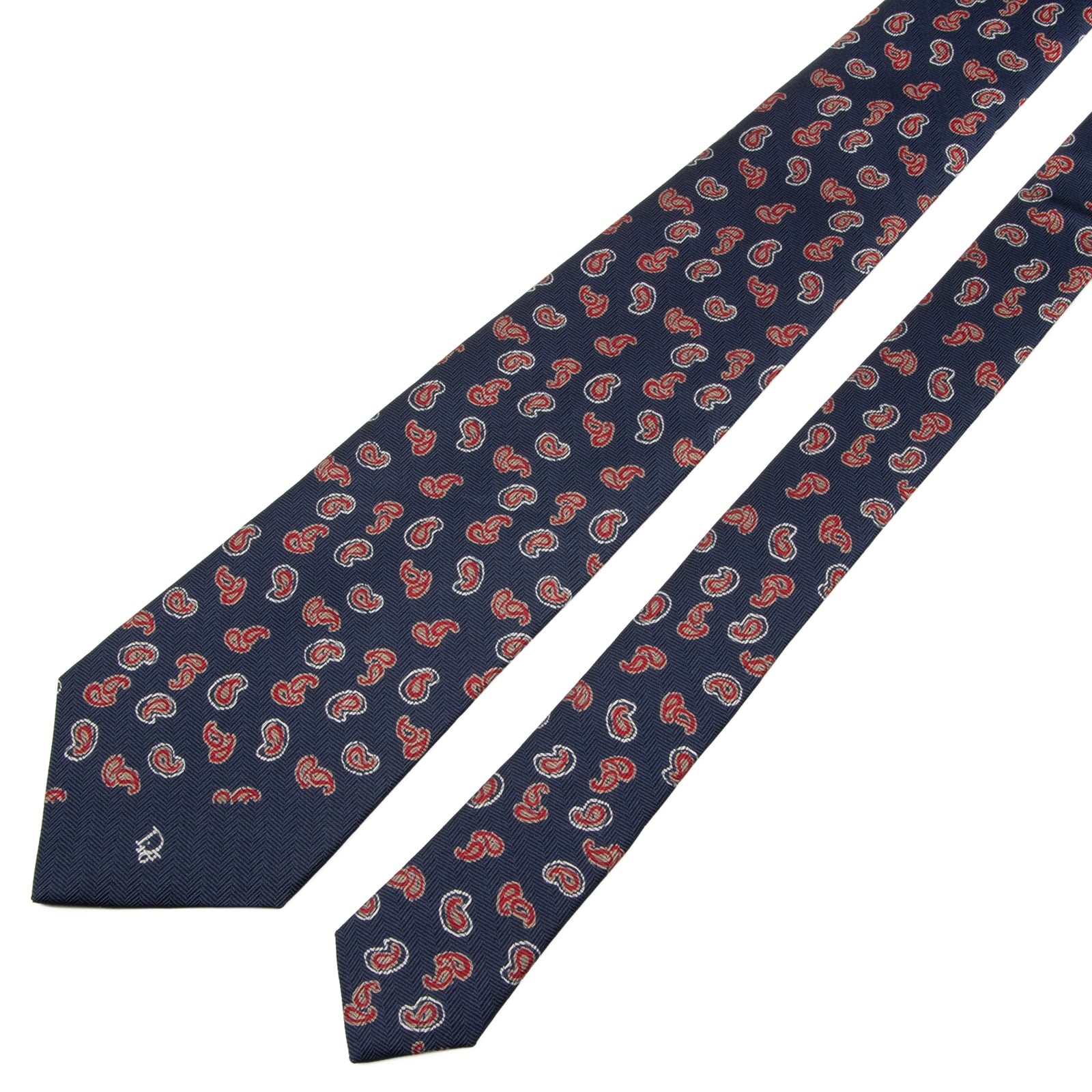 送料無料 ディオール ネクタイ レギュラータイ ジャガード 新品同様 ネイビーブルー 赤 グレージュ 白 ペイズリー Y2K ロゴ マーク P548