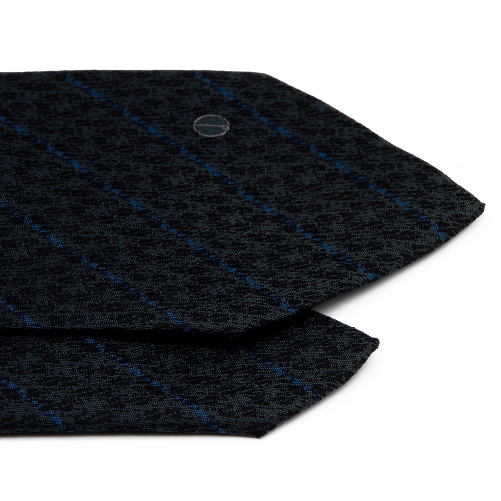 イタリア製の重厚なシルクジャガードが、ネイビーブルーを基調としたデザインに深い奥行きを与えております。