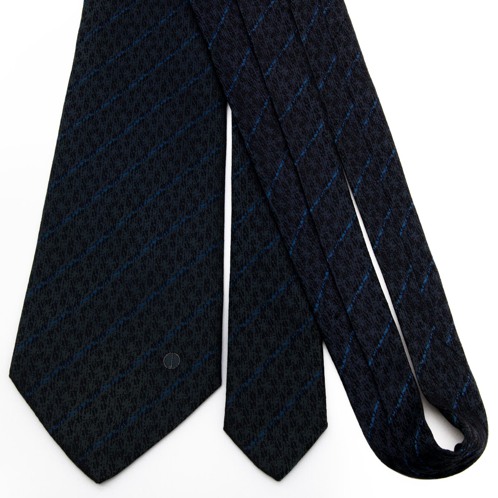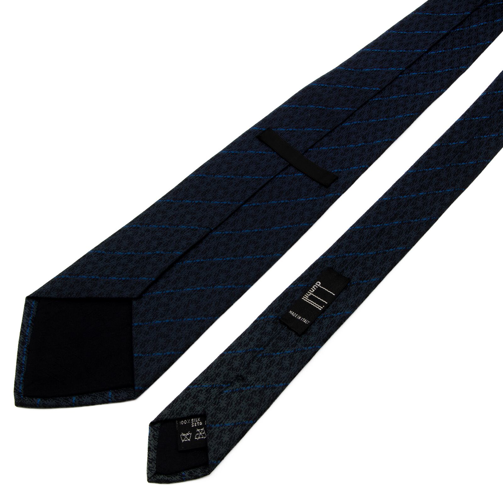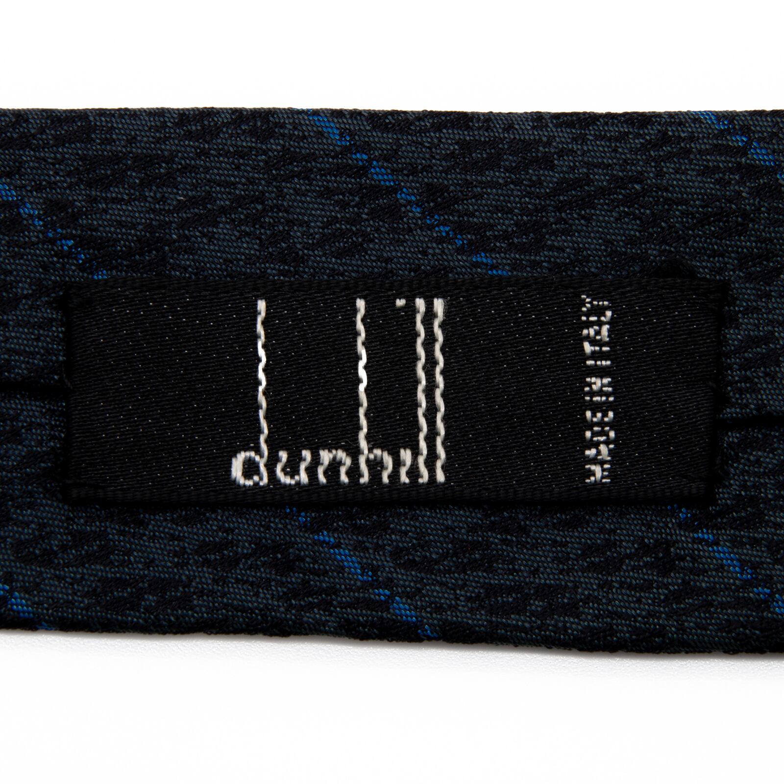 こちらは知的なネイビーに青いラインが走る、ダンヒルのネクタイでございます。