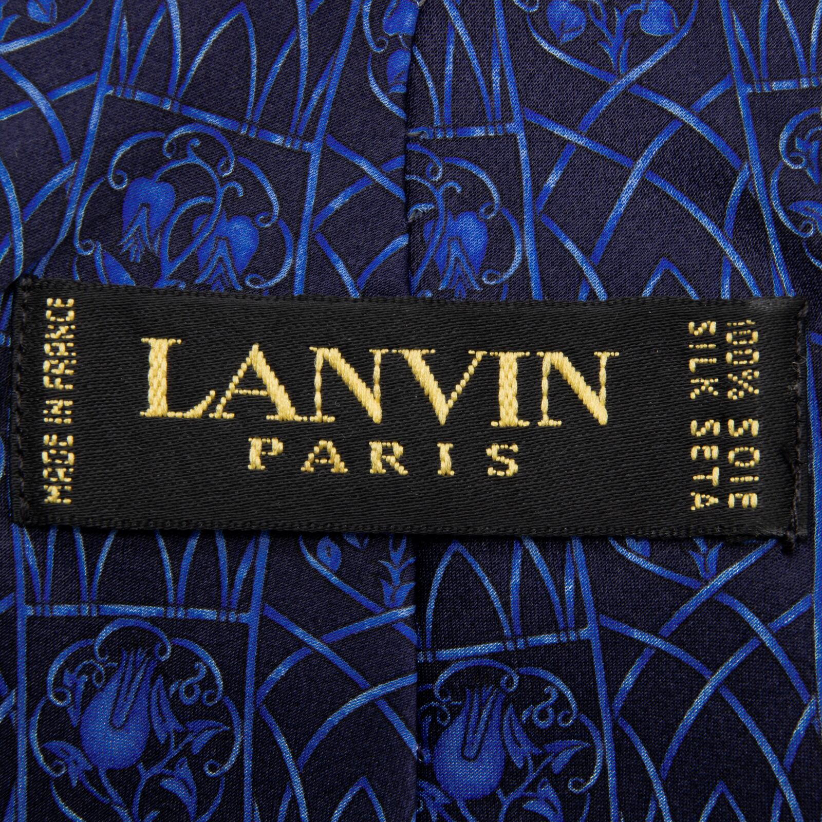 送料無料 ランバン ネクタイ シルク 紺色 ネイビーブルー 青 ビジネス カジュアル 総柄 花 フラワー ブランド おしゃれ フランス 綺麗 P569