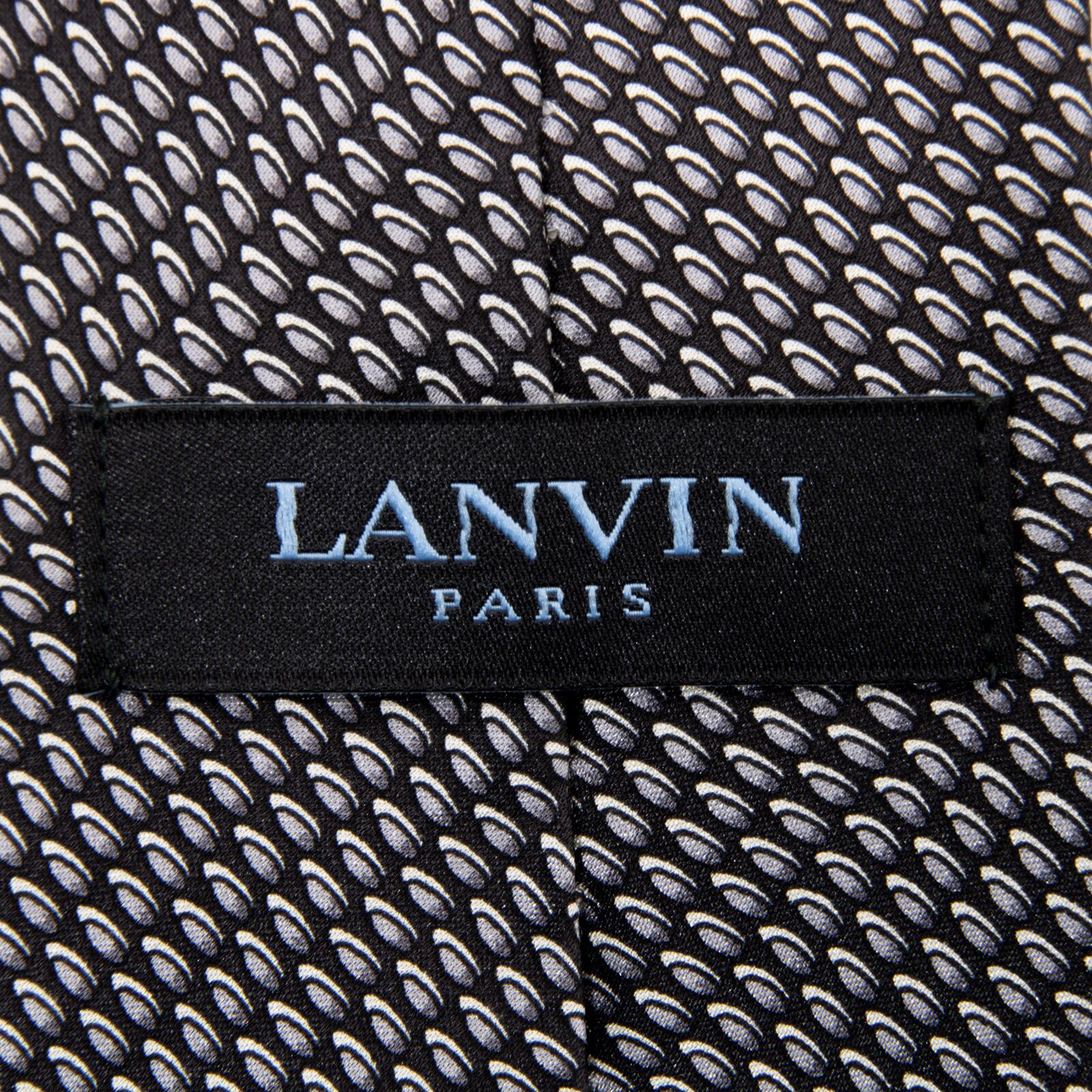 送料無料 ランバン ネクタイ ナロータイ 新品 シルク グレー 黒 ブラック ビジネス 総柄 マーク ブランド おしゃれ フランス製 綺麗 P708