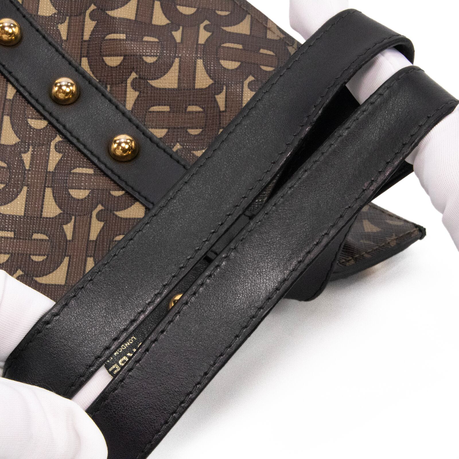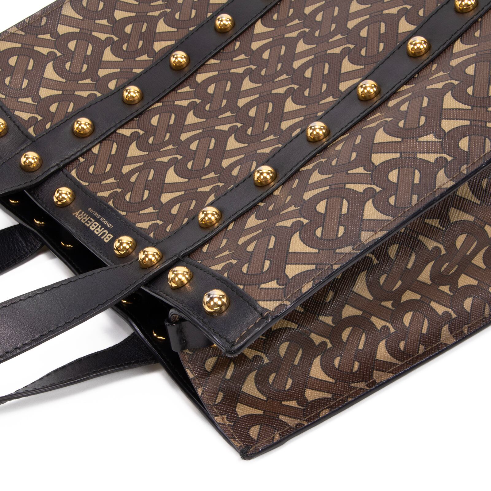 ブランドの創設者トーマス・バーバリーのイニシャルをモチーフにしたTBモノグラムが、全面に施されております。