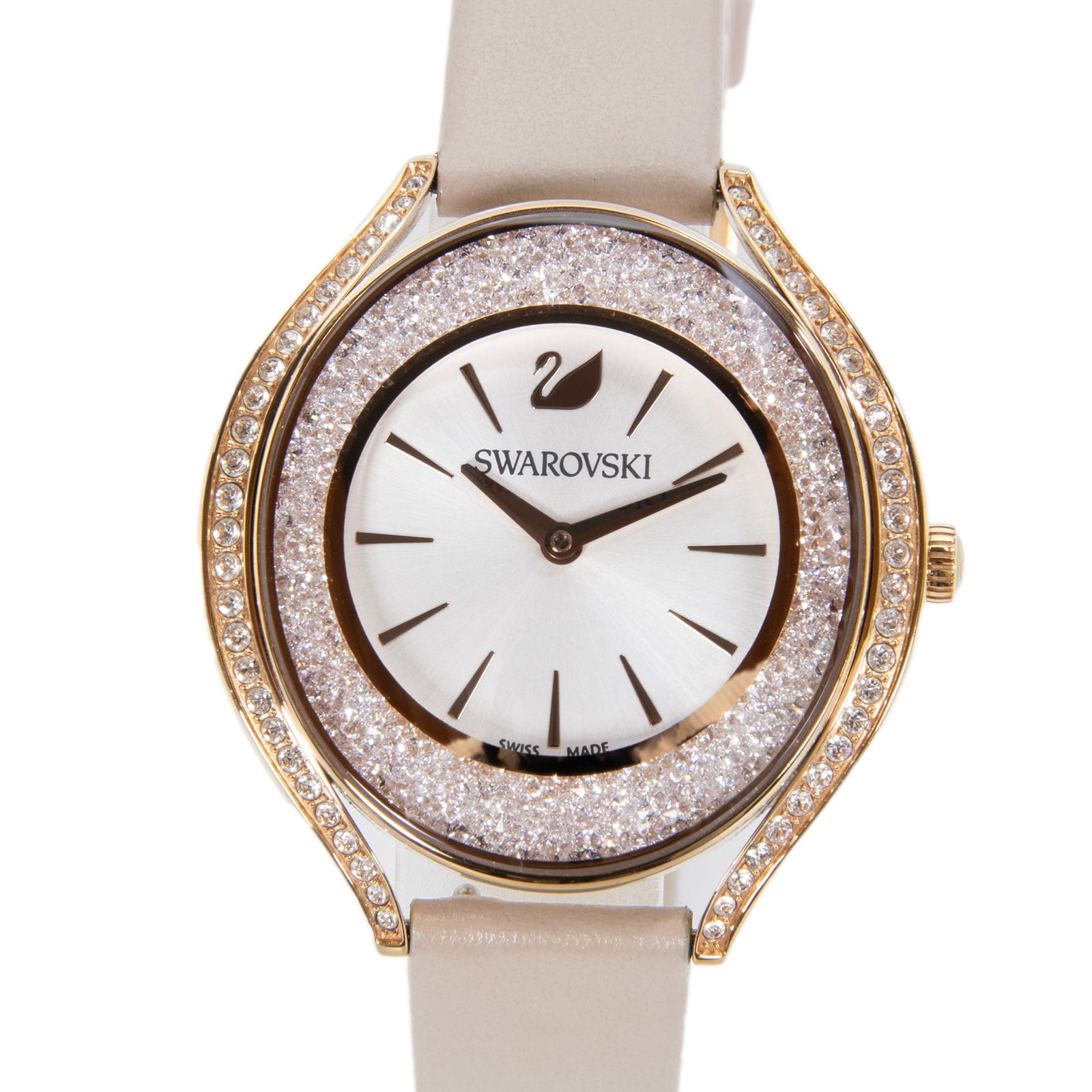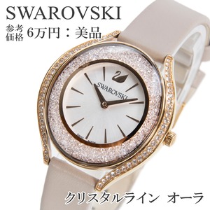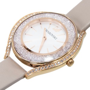 送料無料 スワロフスキー 腕時計 レディース クリスタルラインオーラ 白 ピンクゴールド ローズグレー ビジュー ロゴ マーク ブランド X407