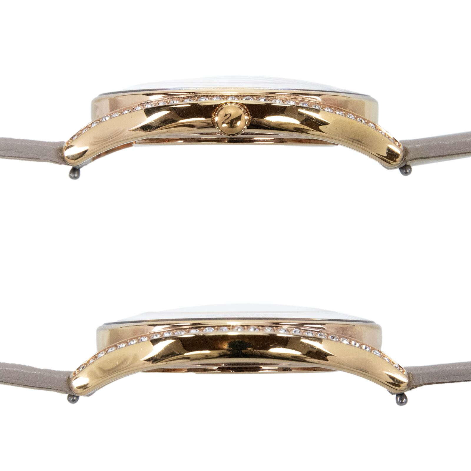 ピンクゴールドのケースが、ホワイトの文字盤を優しく包み込みます。