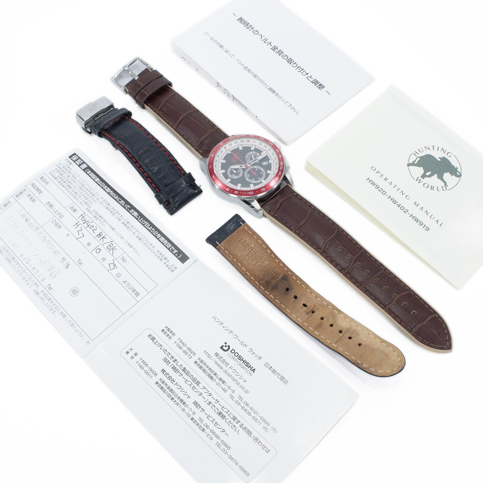 送料無料 ハンティングワールド 腕時計 メンズ クロノマジック HW402BK 黒 赤 クロノグラフ ロゴ マーク ブランド 珍しい スイス製 X411