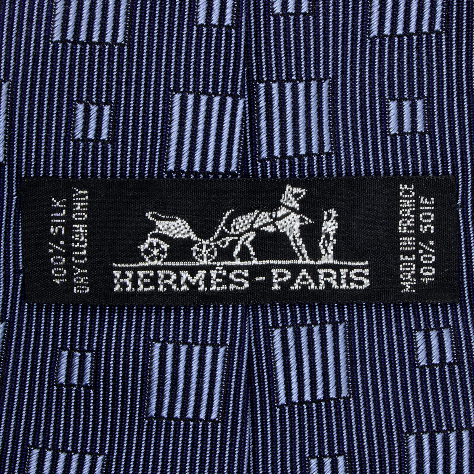 送料無料 エルメス ネクタイ レギュラータイ ジャガードタイ 新品同様 グレーブルー ネイビーブルー ストライプ 光沢 四角 ブランド S523