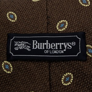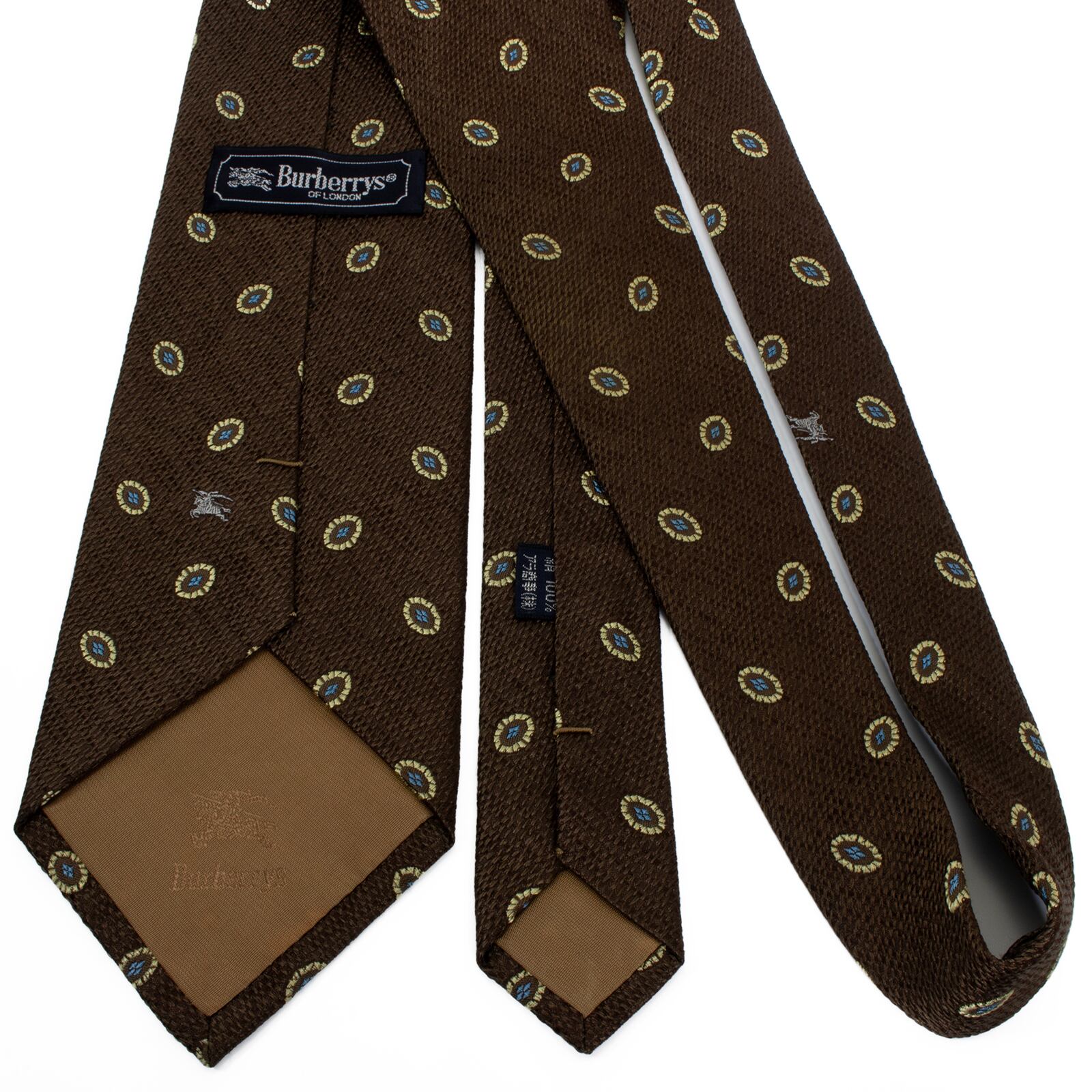送料無料 バーバリー ネクタイ レギュラータイ ジャガード シルク 茶色 ブラウン 黄色 青 総柄 Y2K 90s ホースロゴ マーク ブランド S528