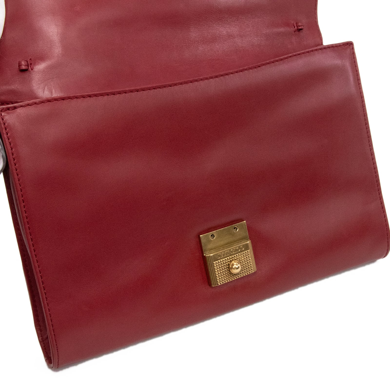 深みのあるレッドカラーは装いのアクセントとなり、ゴールドの金具がさりげない高級感を演出しております。