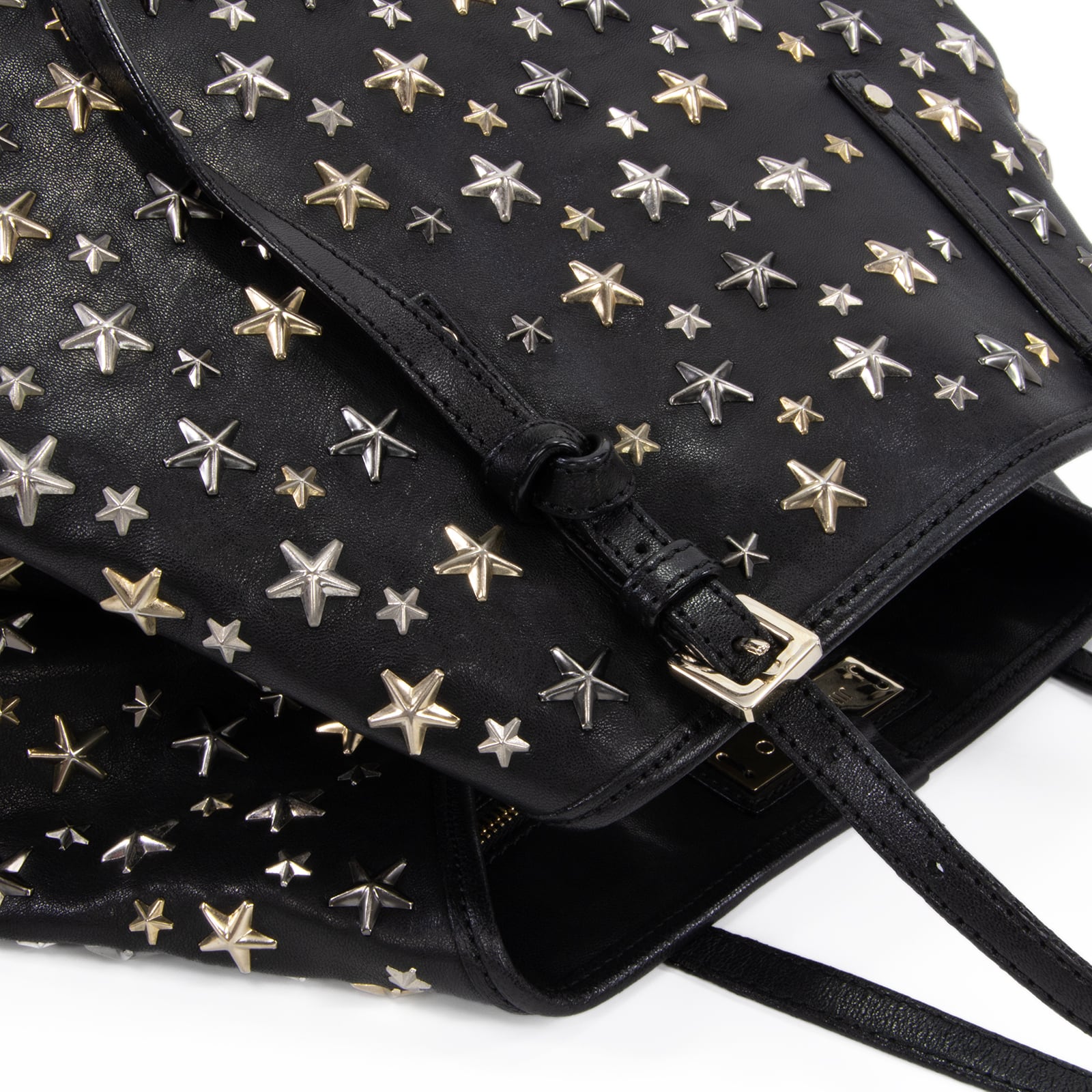 アイコニックな3色のスタースタッズが全体に贅沢に散りばめられ、持つだけで周囲の視線を集める華やかな存在感を放ちます。