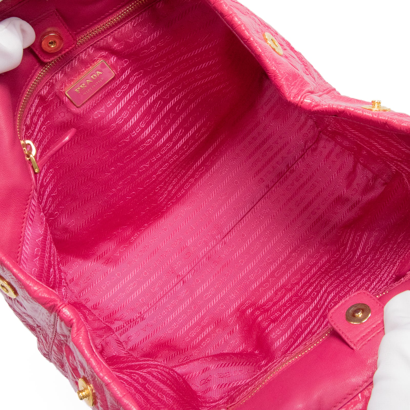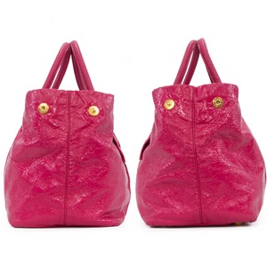 本物 送料無料 プラダ ハンドバッグ レディース エナメルレザー フューシャピンク 人気 リボン ロゴ マーク 本革 かわいい 鞄 バック E435