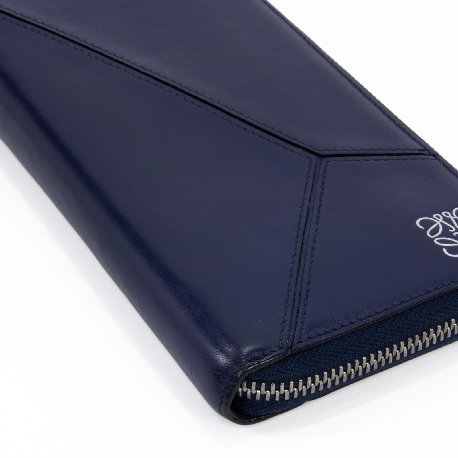 本物 送料無料 ロエベ 長財布 ラウンドファスナー メンズ レディース パズル ネイビーブルー アナグラム ロゴ マーク 革 レザー 綺麗 H081
