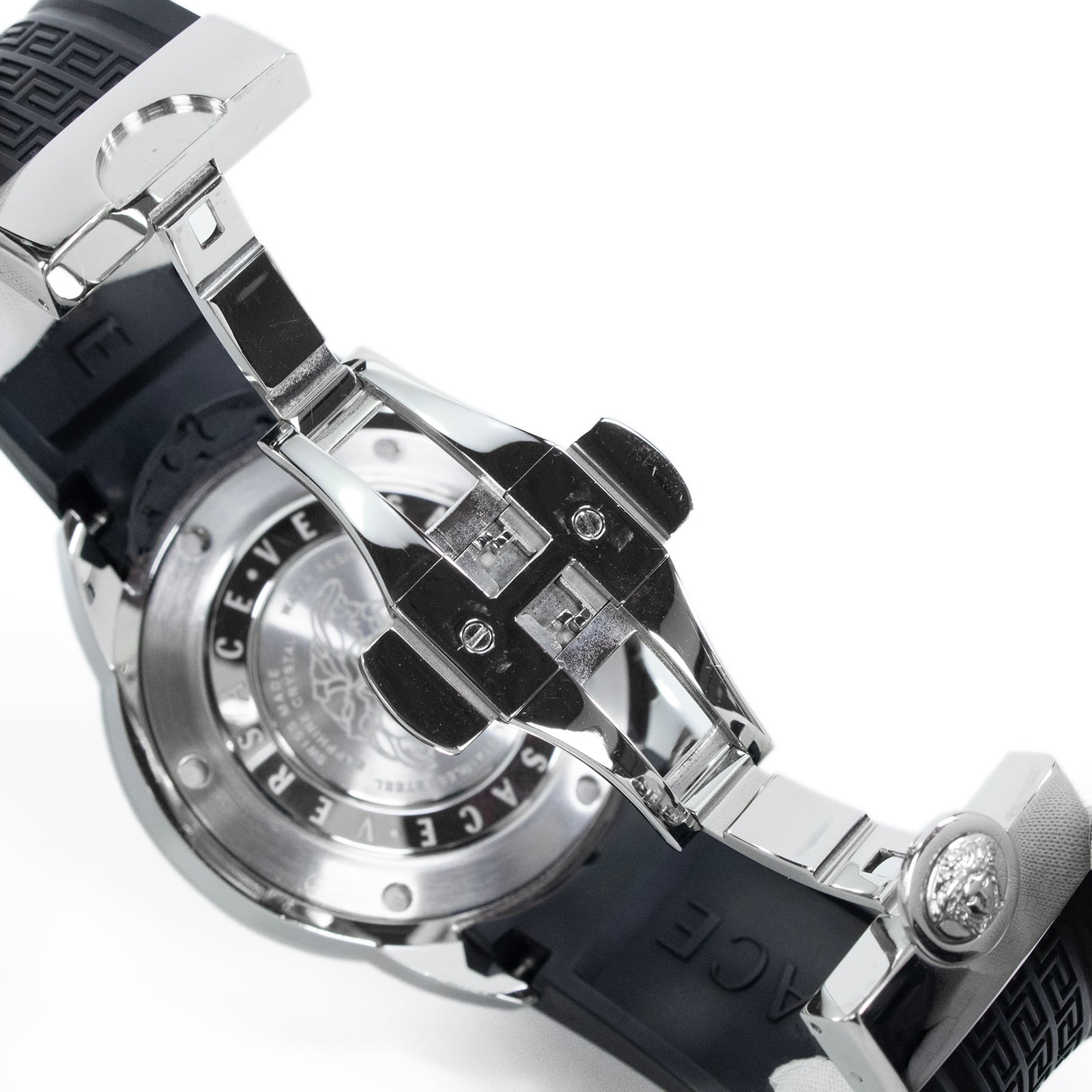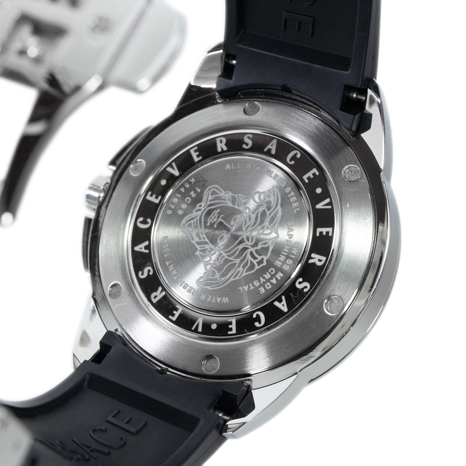 特徴:クロノグラフ・グレカ模様・メドゥーサロゴ・マーク・樹脂ベルト・樹脂バンド・スモセコ・ブランド・珍しい・人気・おしゃれ